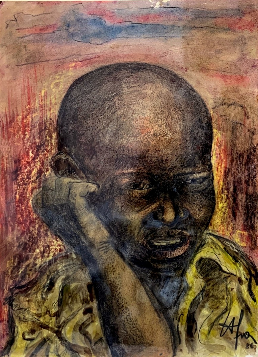 Tecnica mista su carta raffigurante giovane di colore. Firmato Cafra (Cafra Francesco), XX secolo. Datato 86. Cm 49x34 ,