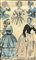 Coppia di stampe, inizia XX secolo, raffiguranti abiti di moda femminili e dimora di A. Guoux. Cm 23x14, in cornice cm 3