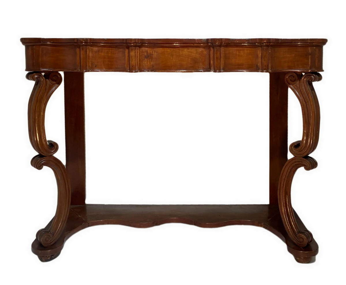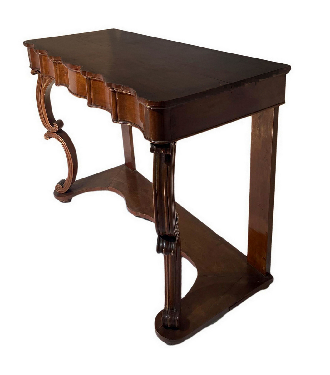 Console in legno di mogano, XIX secolo. Luigi Filippo. Sicilia. H cm 100. Cm 130x60. Ottime condizioni.