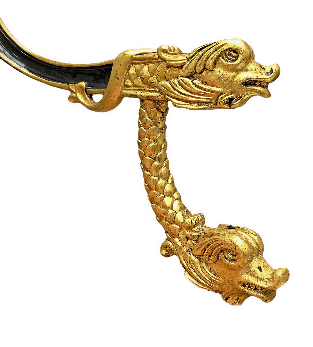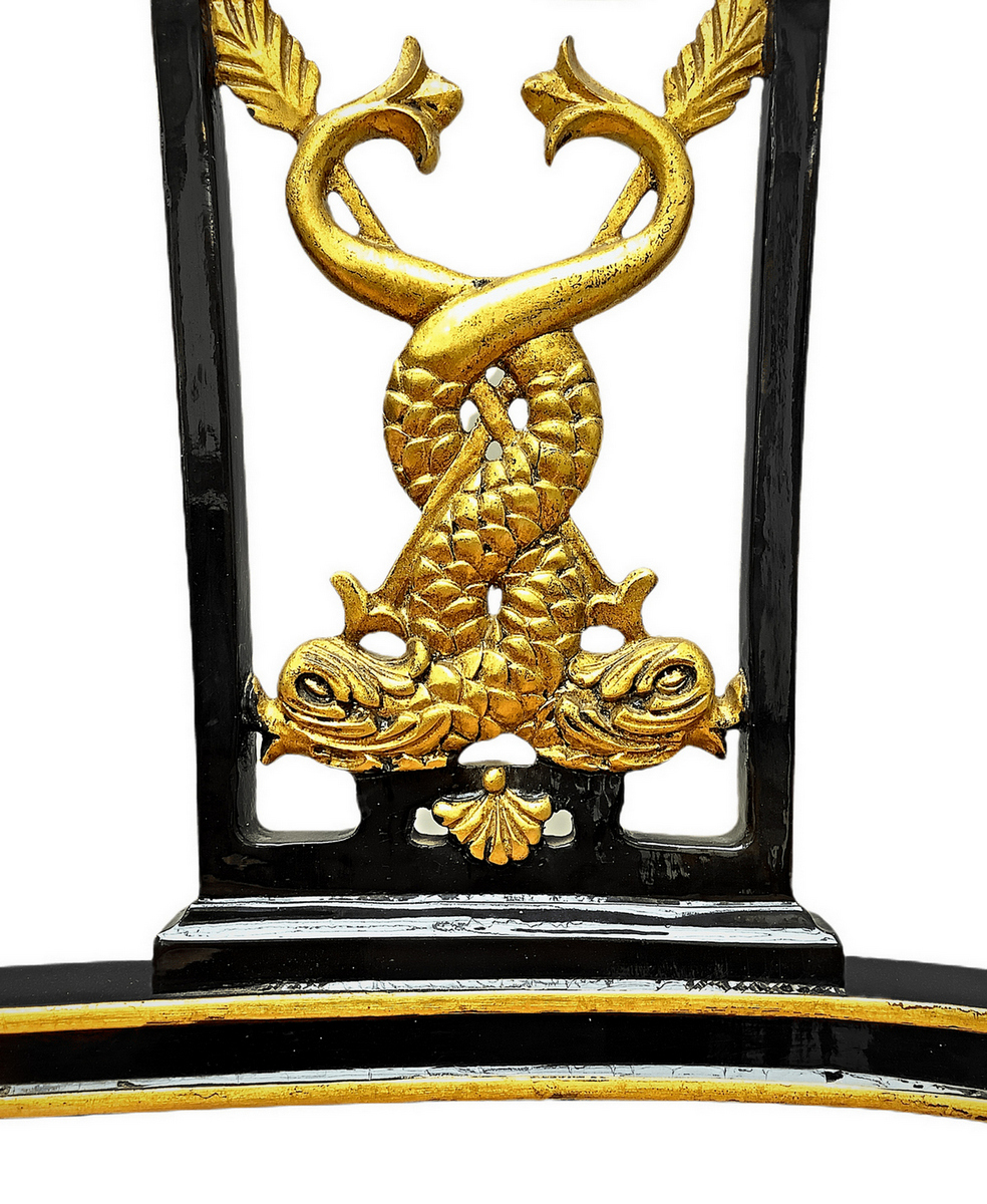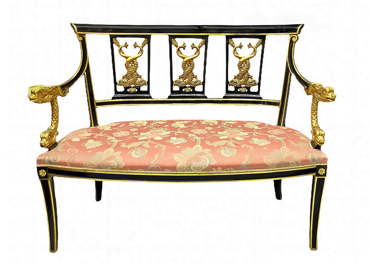 Divano in stile Napoleone III in legno laccato nero e dettagli dorati, metà XX secolo. H cm 93x 125. Profondità cm 65