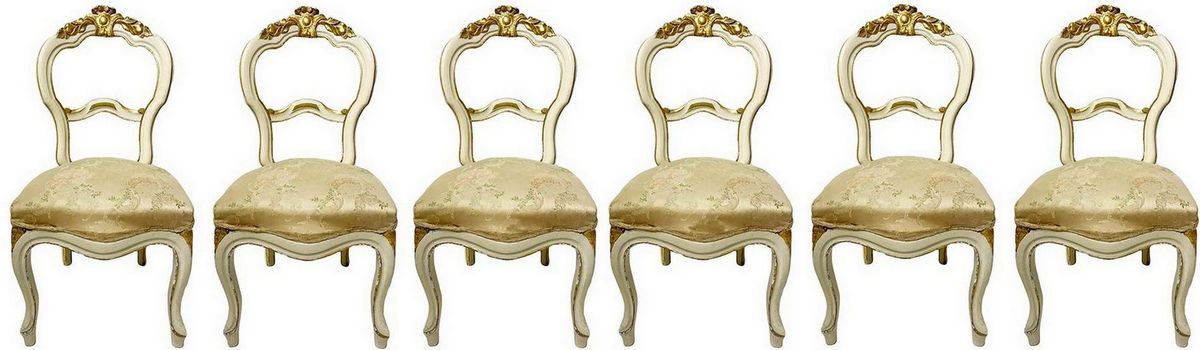 N. 6 Sedie nei toni del beije e dorato a foglia, Luigi Filippo, XIX secolo, provenienza da nobile famiglia Siciliana. H
