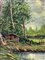 Dipinto ad olio su tela su supporto rigido raffigurante cascina con alberi sul lago, Remo Testa, XX secolo. Cm 27x36, in