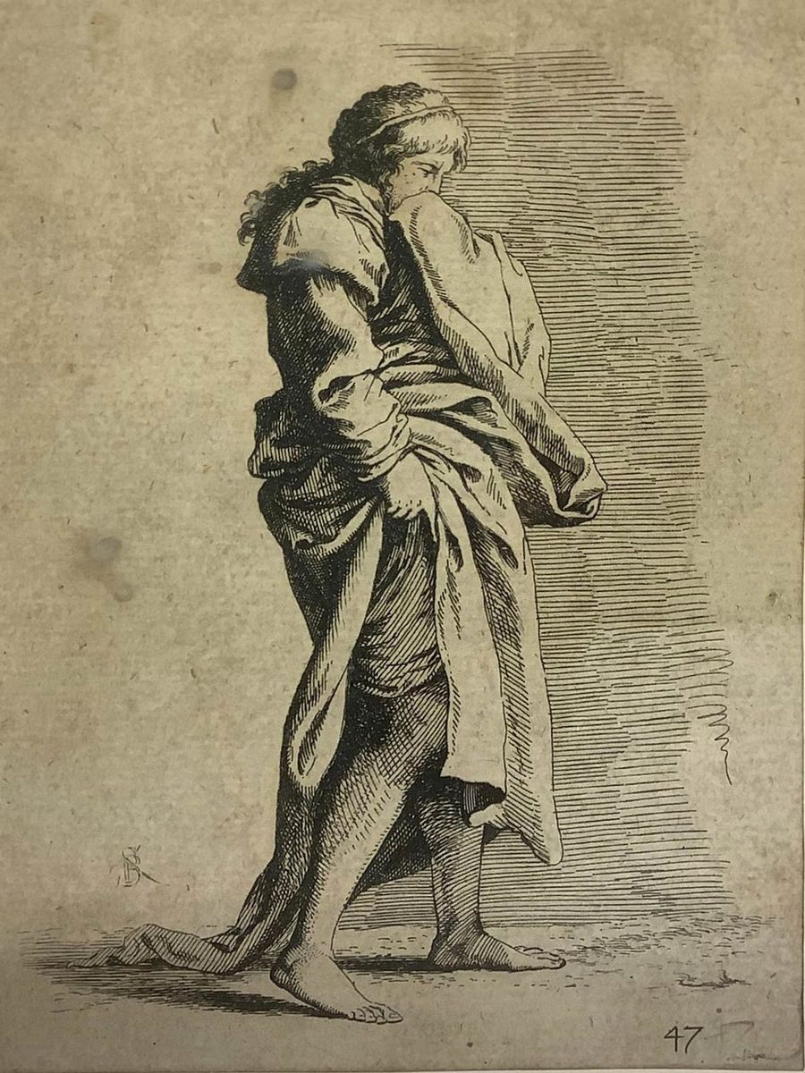 Incisione ad acquaforte a punta secca Salvator Rosa (Napoli 1615-Roma 1673) raffigurante donna che si copre il viso, tra