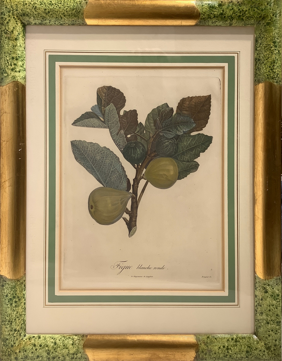 Incisione raffigurante ramo con fichi â€figue blanche rondeâ€, firmato Louise Bouquette 1765-1814. Cm 34x24,5 in cornice cm 54x42