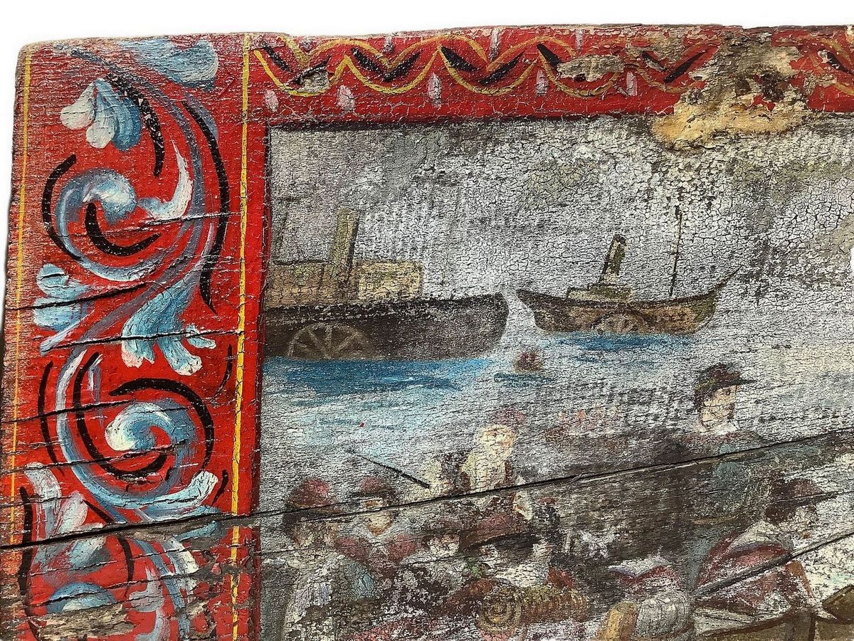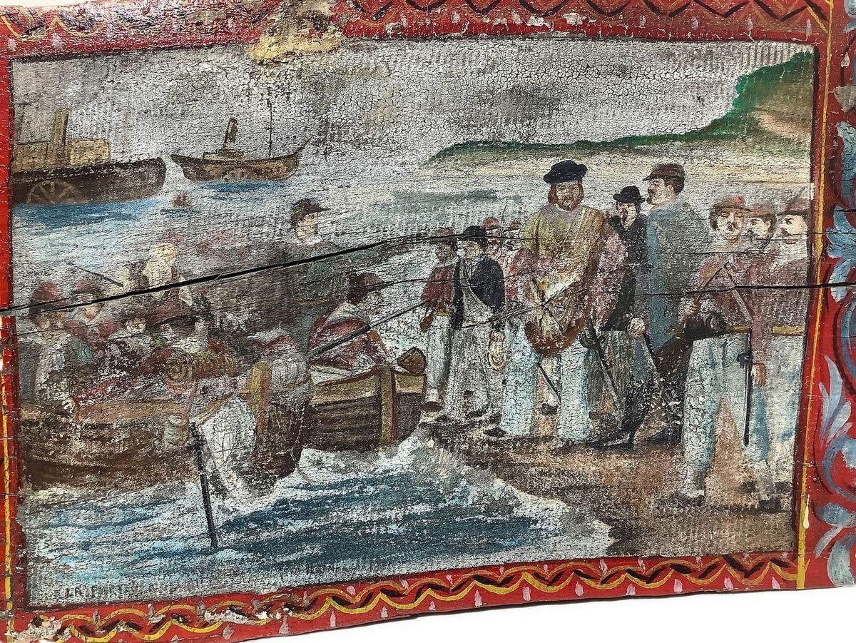 Tavola raffigurante sbarco di Garibaldi in Sicilia con i Mille, fine del XIX secolo, inizi XX secolo, Sicilia. Cm 41x66x6