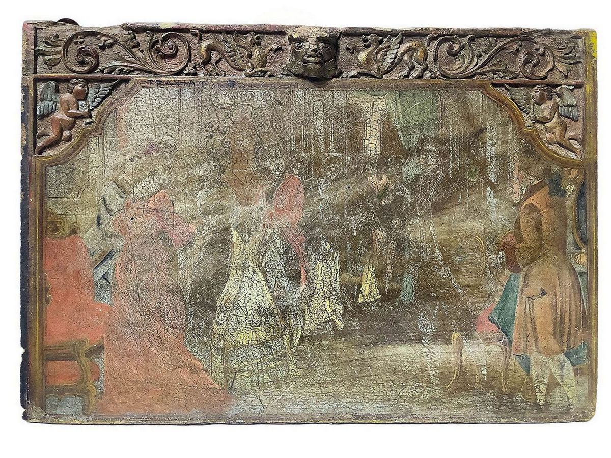 Tavola di carretto con raff Scena della traviata Cm 36x52.