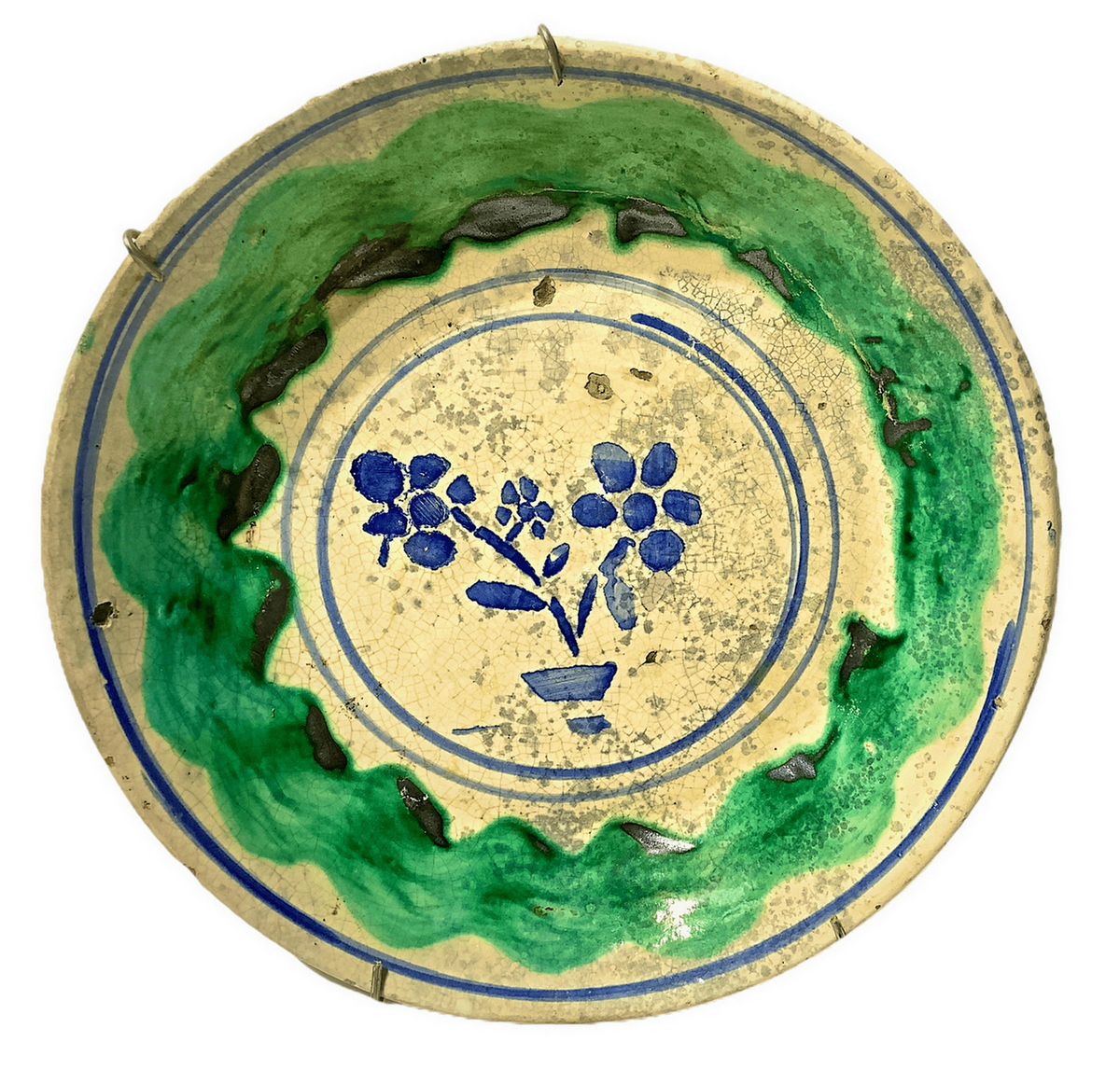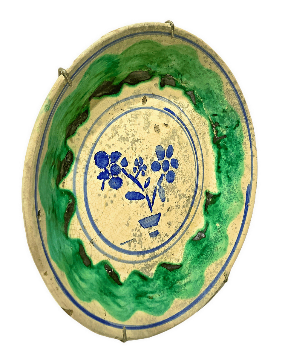 Lot 467 | Piatto Caltagirone spugnato verde con fiore al centro. Diametro cm 36. XX secolo