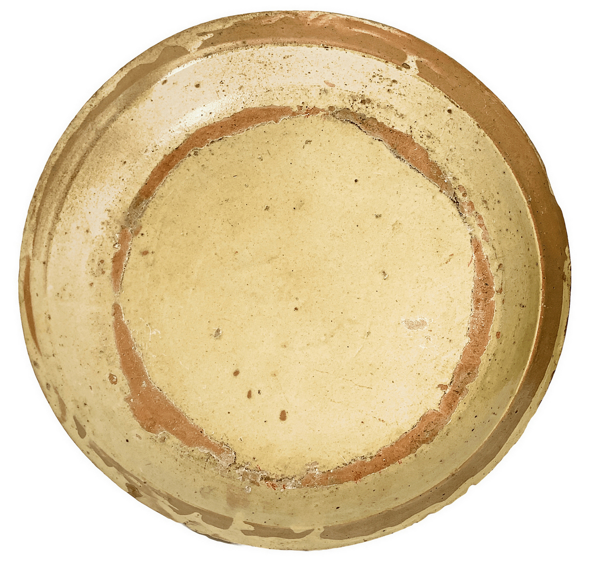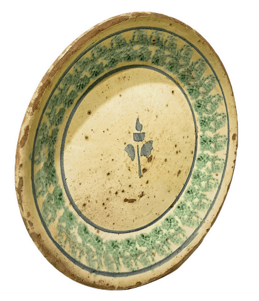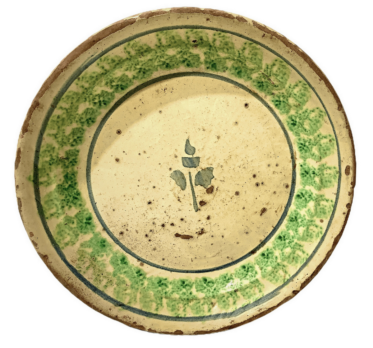 Piatto Caltagirone spugnato verde, foglia al centro. XX secolo. Diametro cm 34