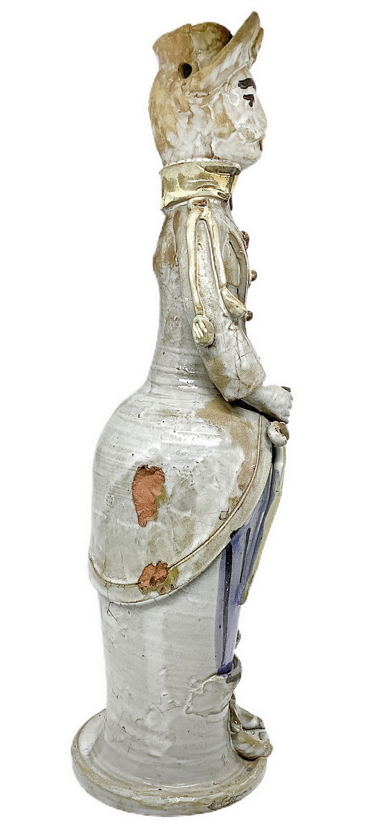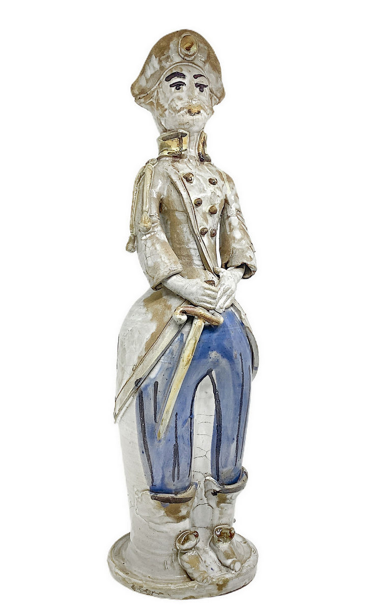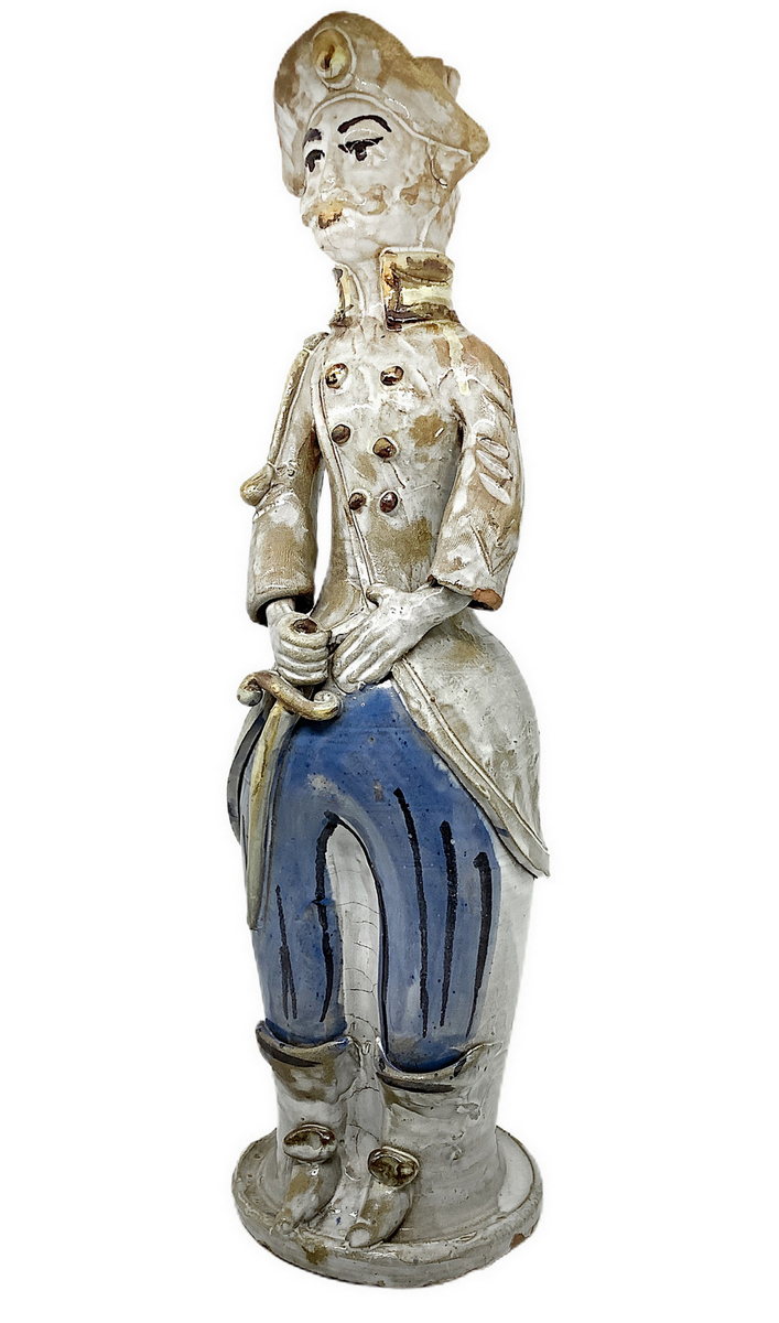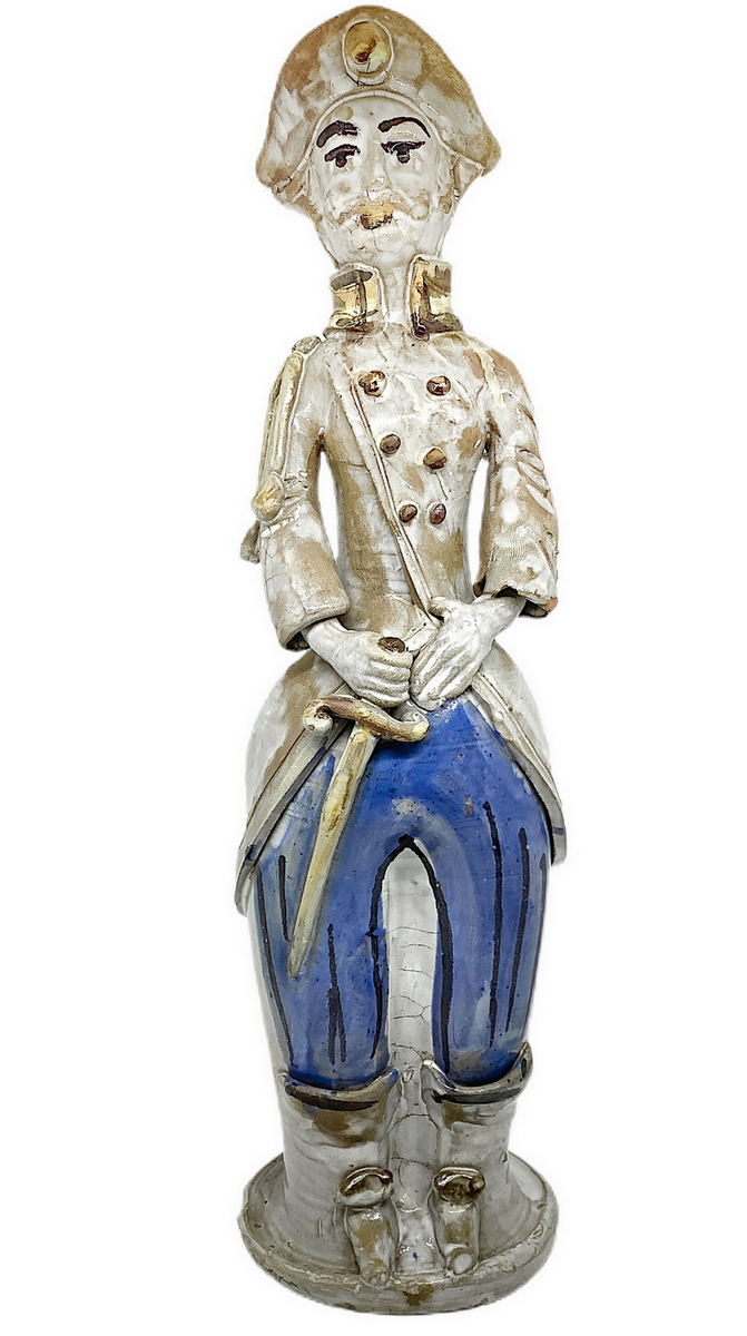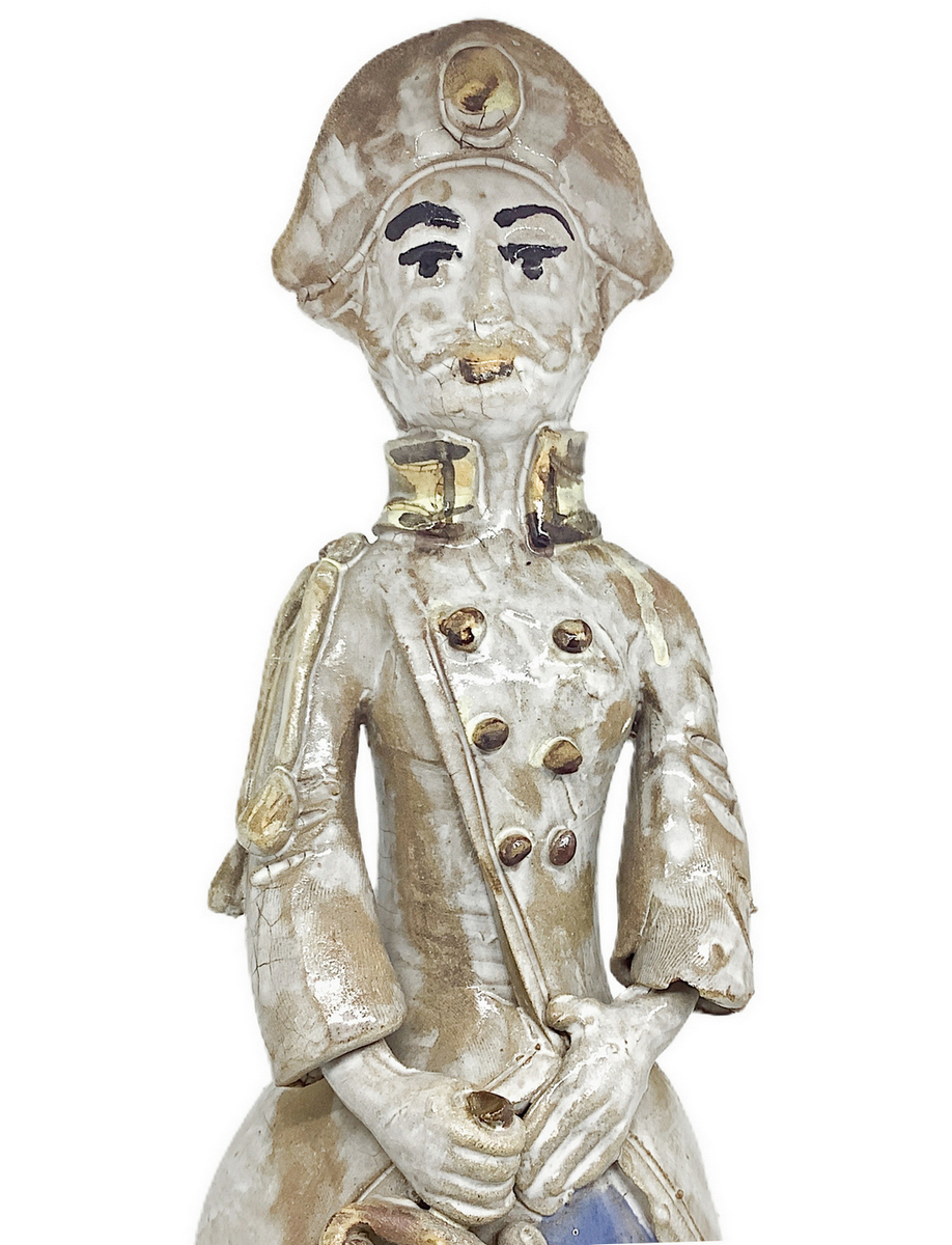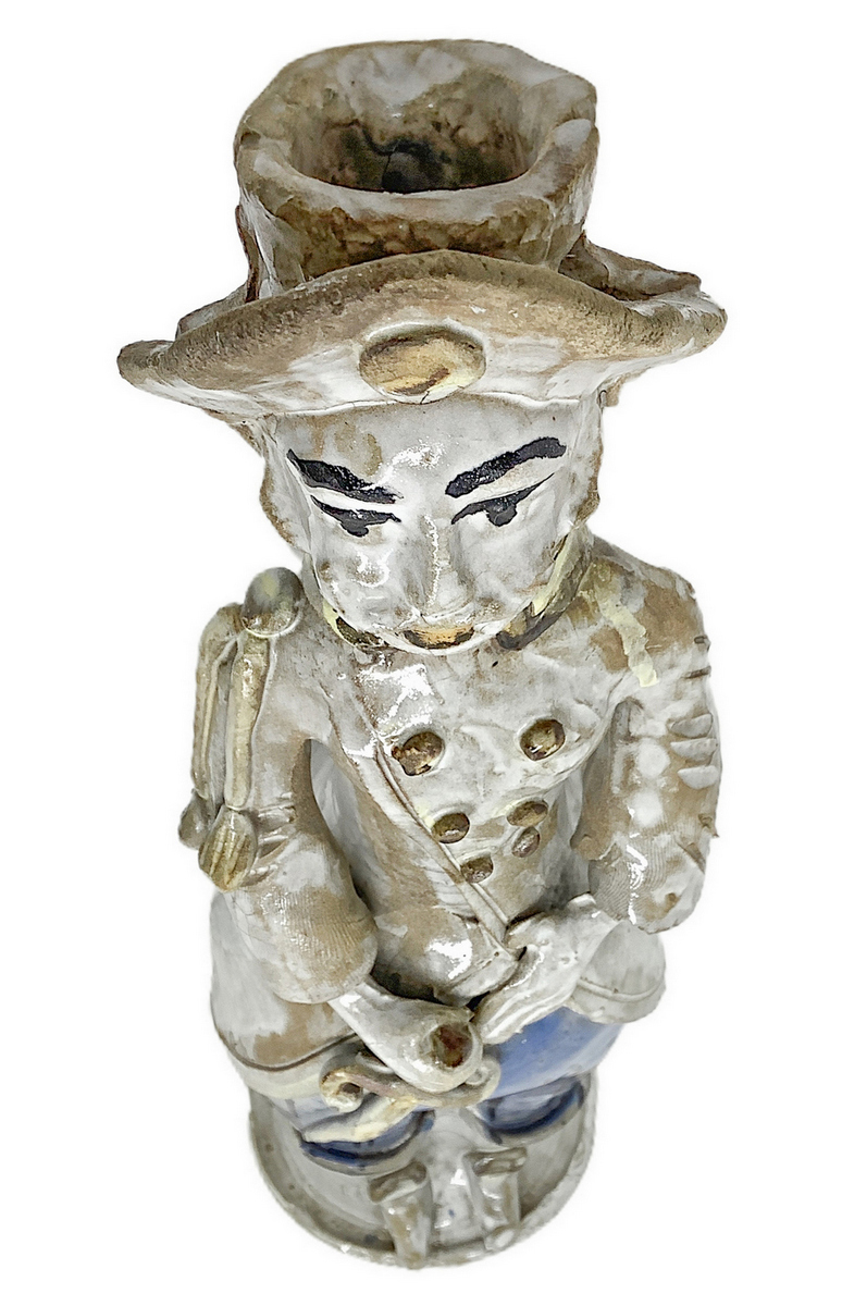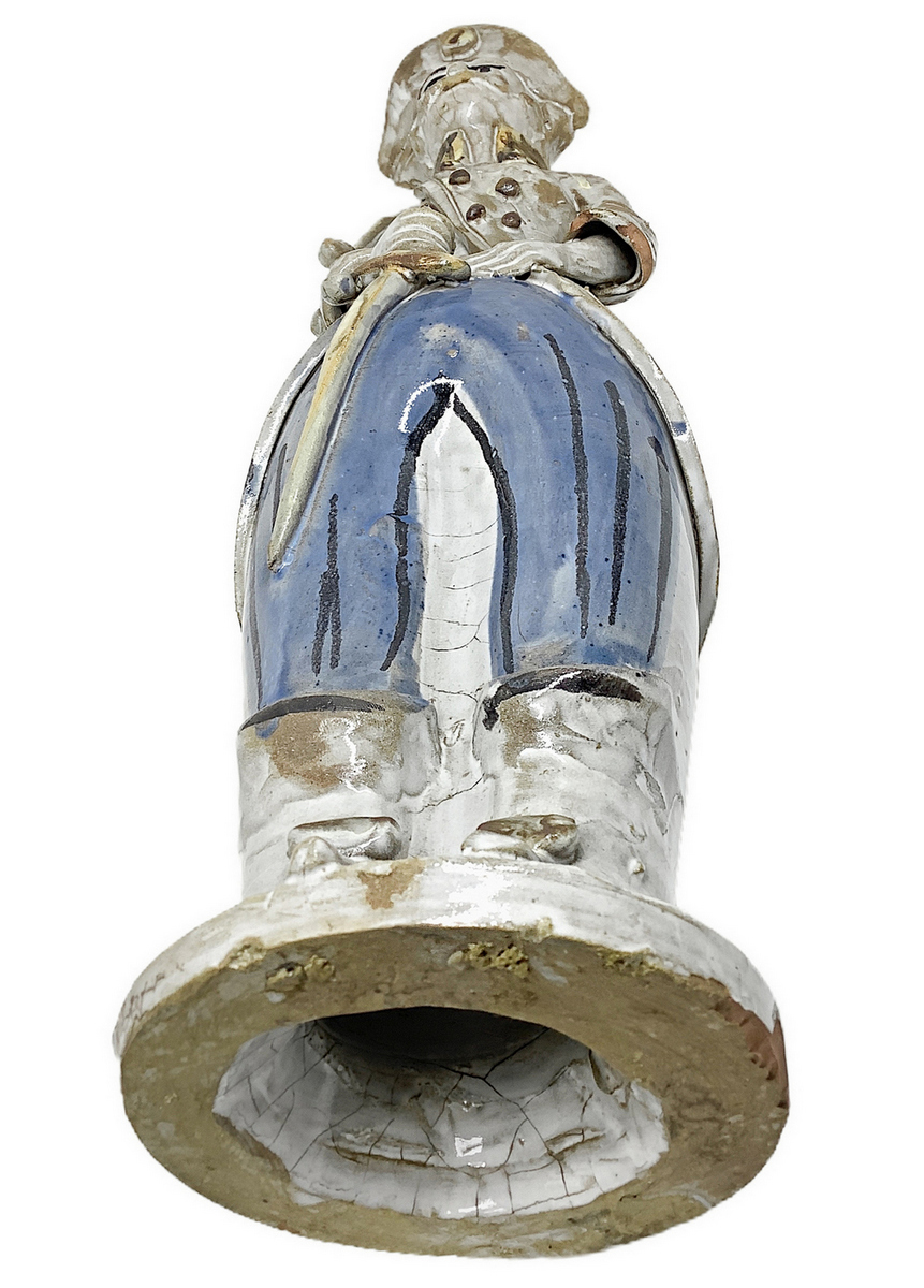 Lumiera in maiolica di Caltagirone raffigurante uomo. H cm 42. Piccola mancanza