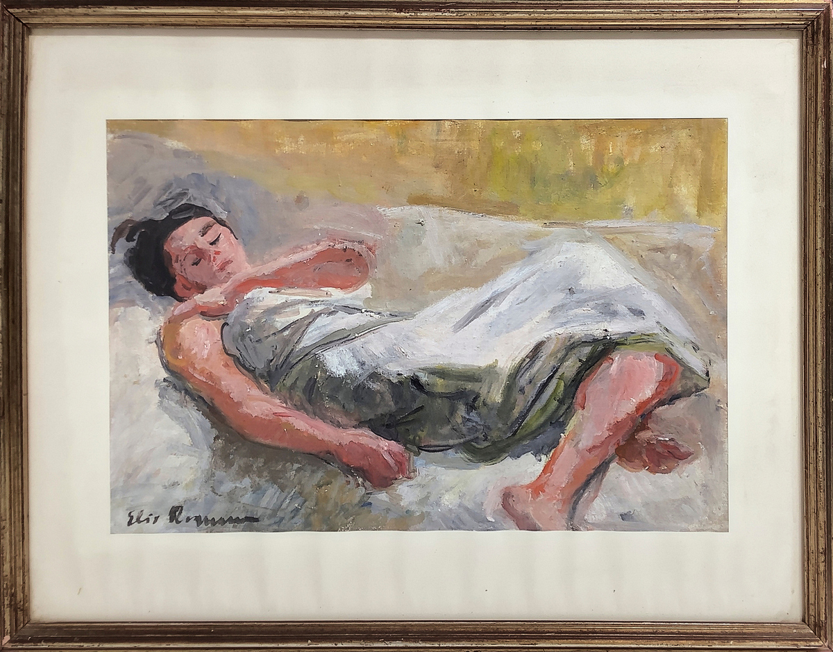 Dipinto ad olio su tela raffigurante giovane donna. Elio Romano (Trapani, 21 marzo 1909 – Catania, 12 luglio 1996) Cm 33x50. In cornice cm 50X67. Firmato in basso a sinistra.