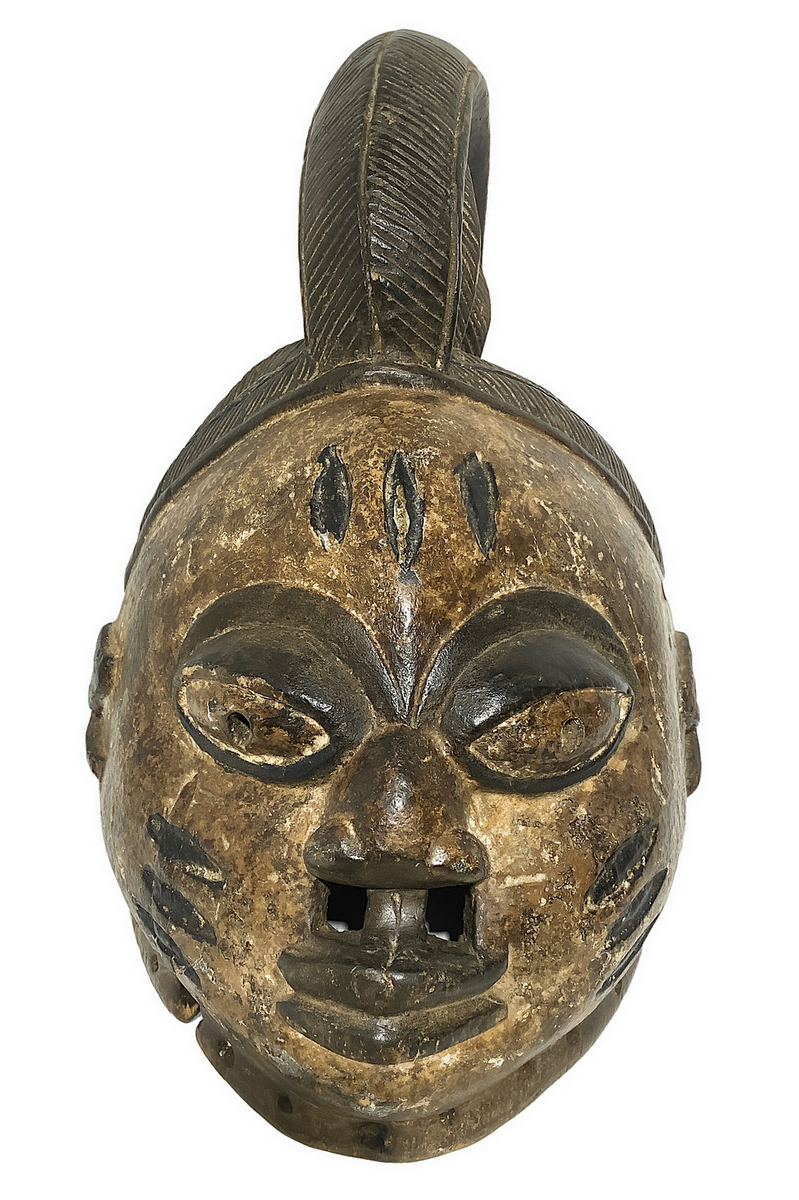 Maschera Gelede, Yoruba, Nigeria, metà XX secolo. H cm 62 x 30