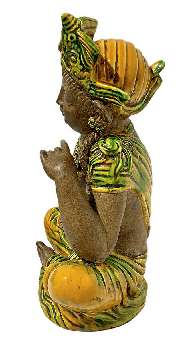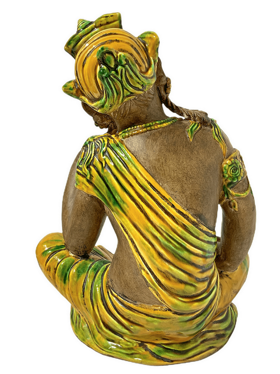 Divinità orientale in terracotta policroma. H cm 40x31