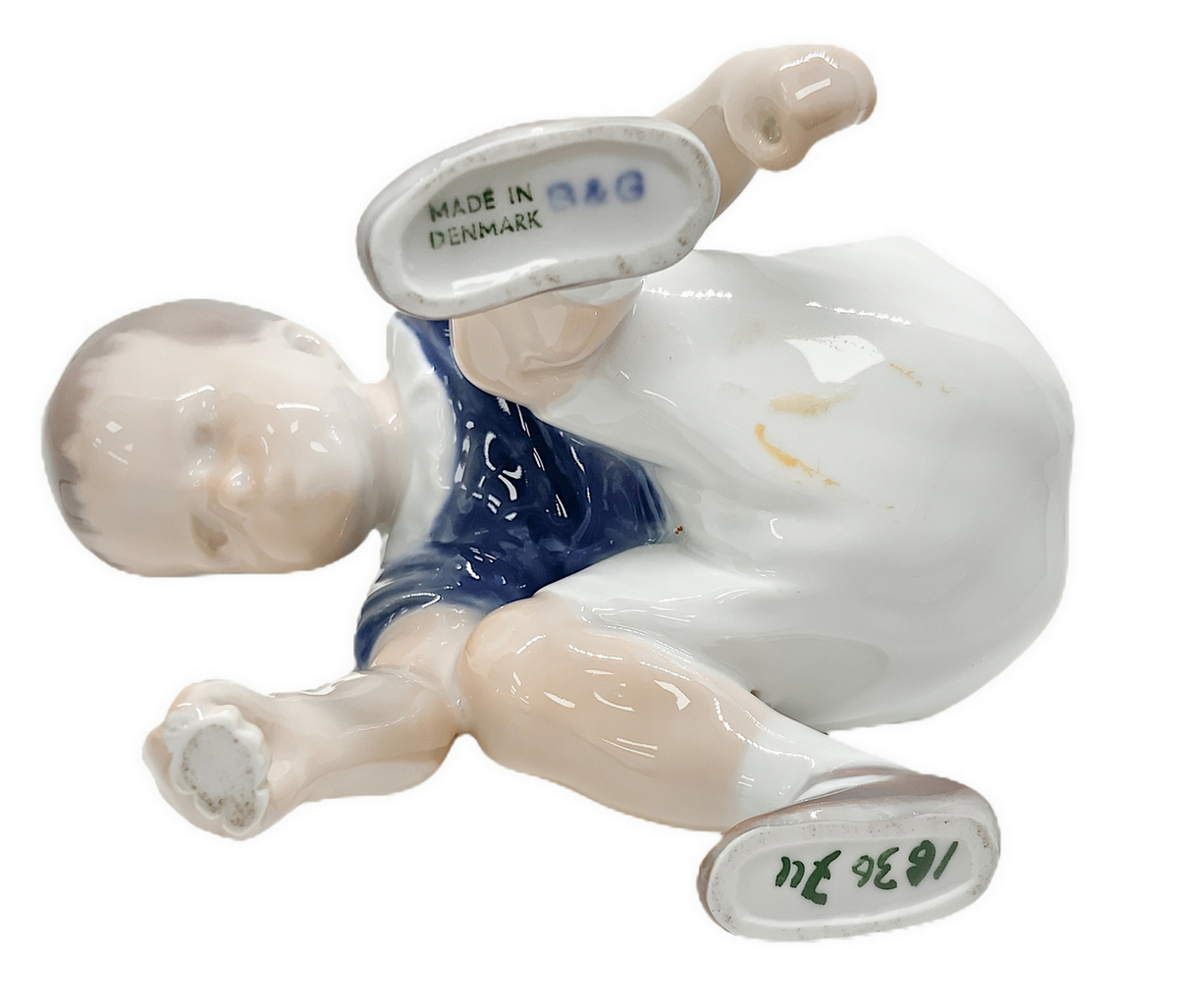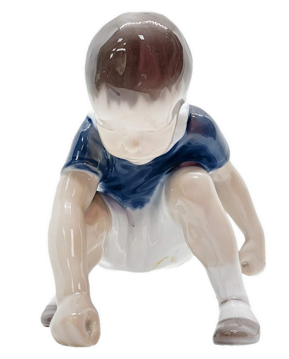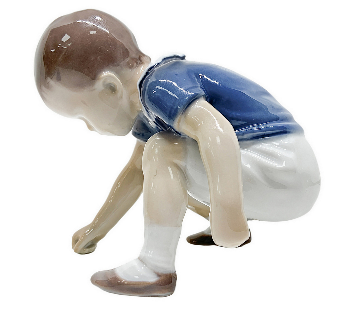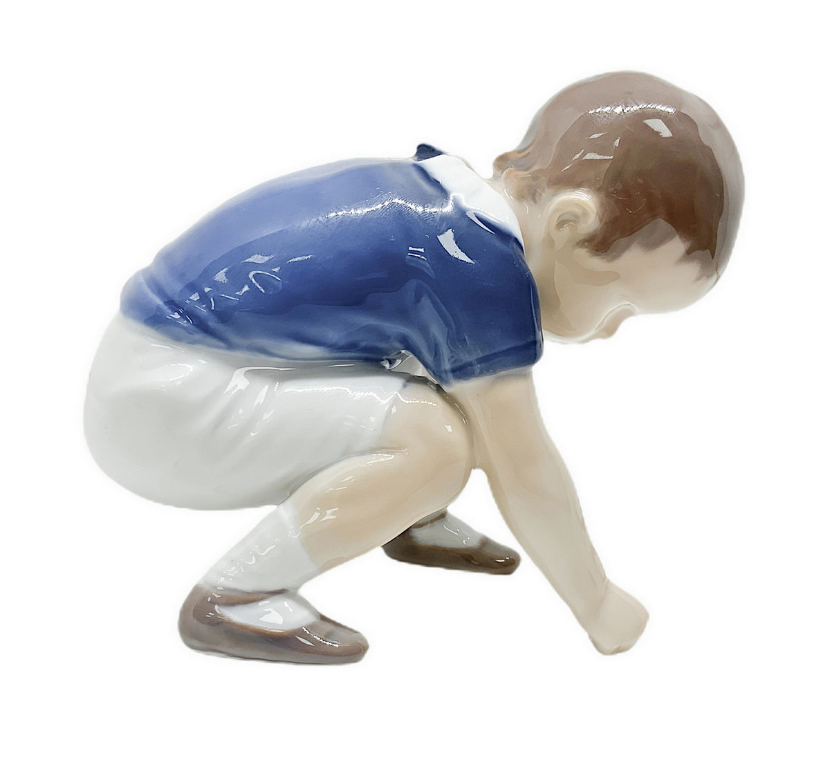 Copenaghen, statuetta in porcellana raffigurante bambino che raccoglie un oggetto. H cm 10x10