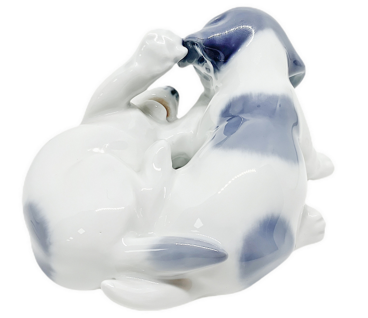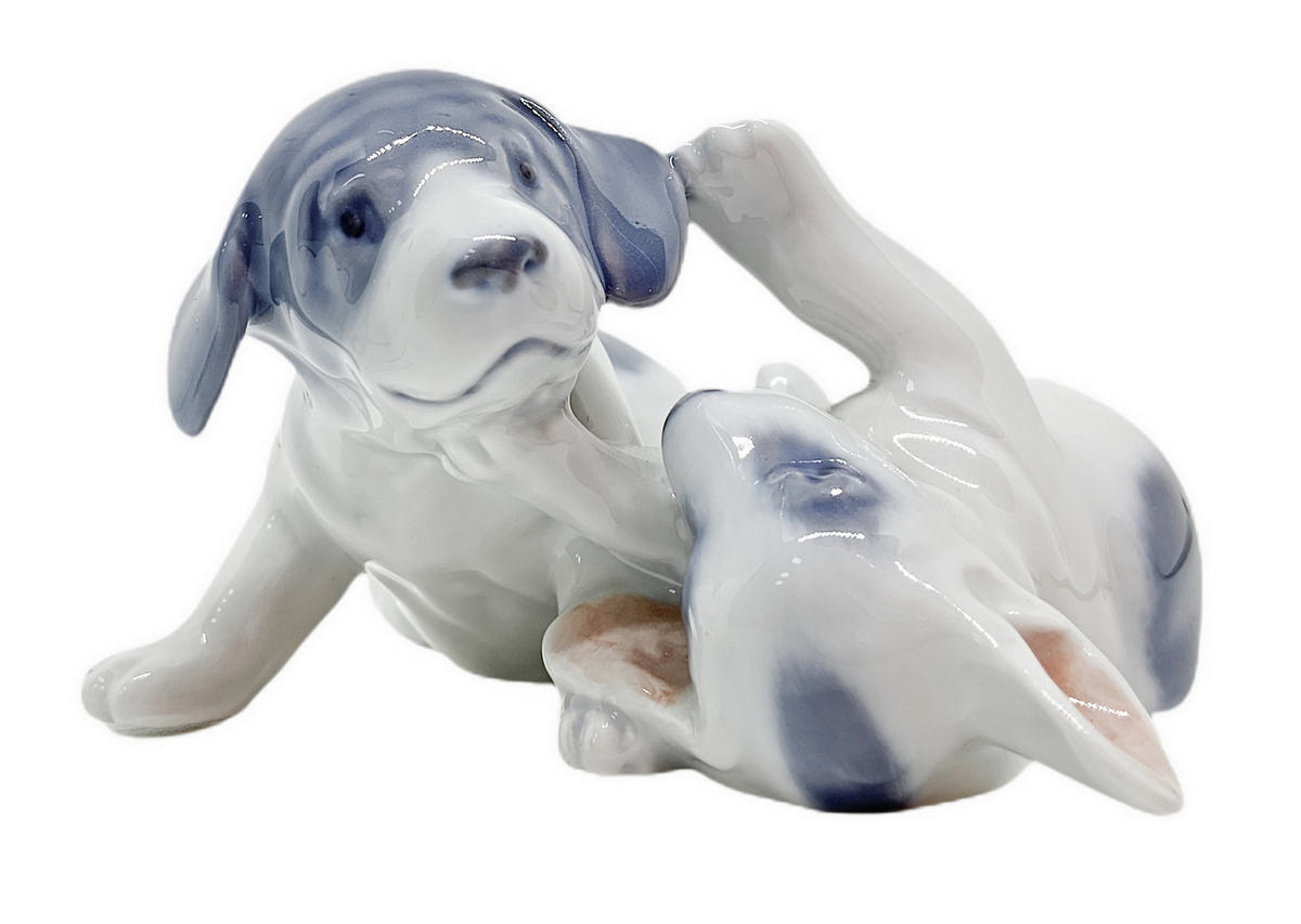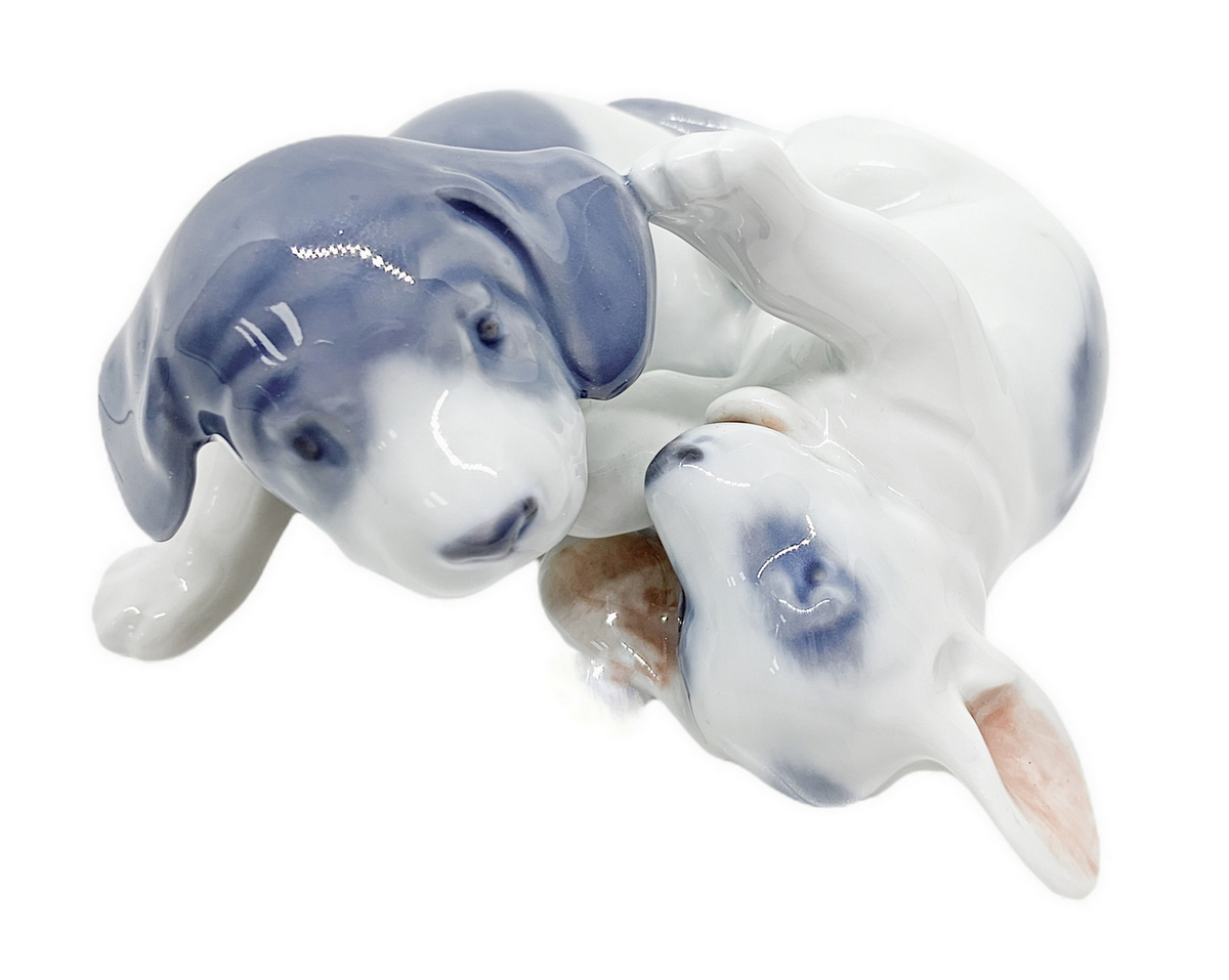 Copenaghen, statuetta in porcellana raffigurante coppia di cuccioli. H cm 6x9