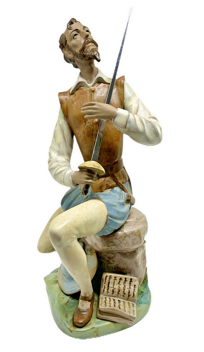 Copenaghen, statuetta in porcellana raffigurante Don Chisciotte . H cm 22