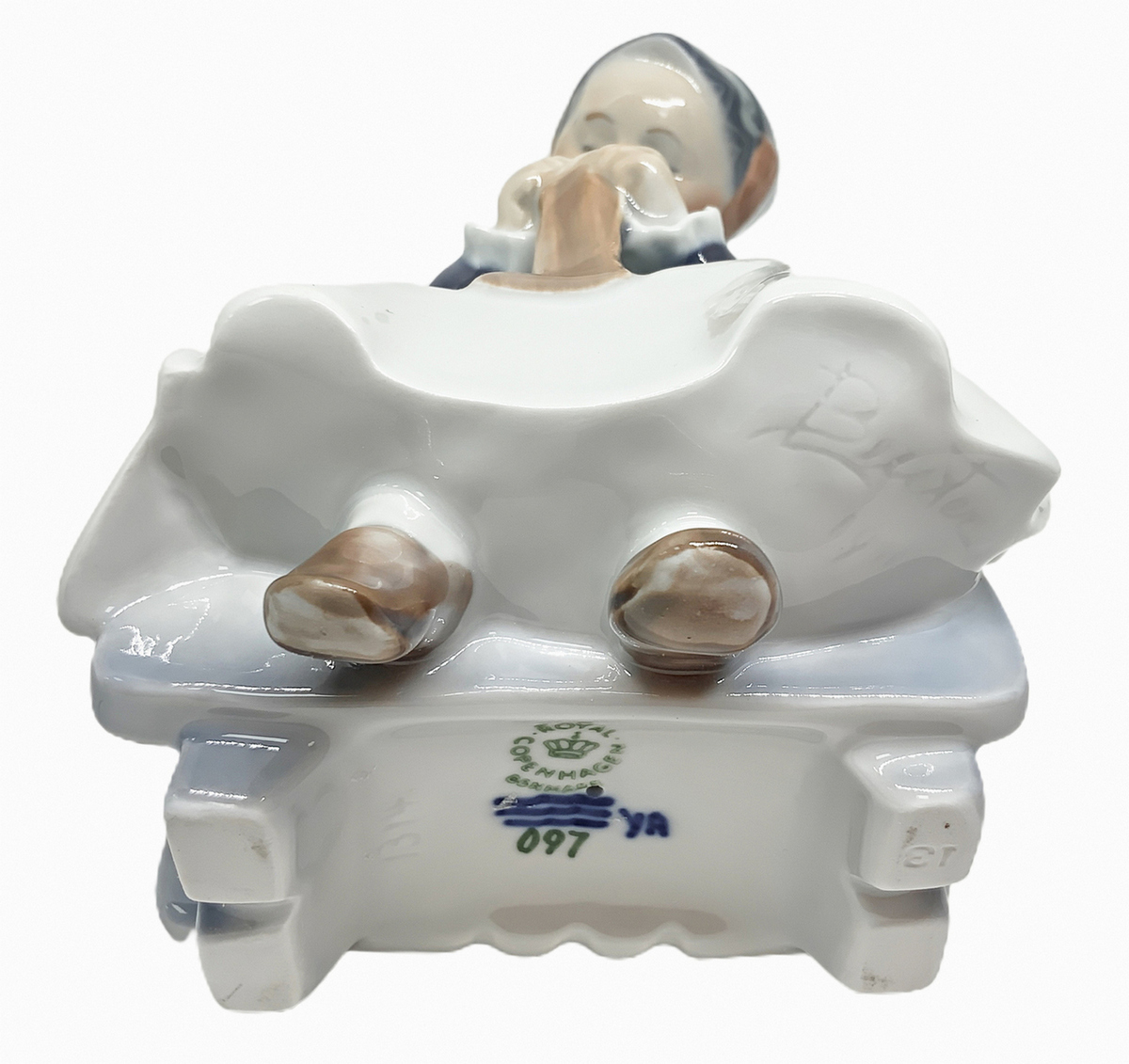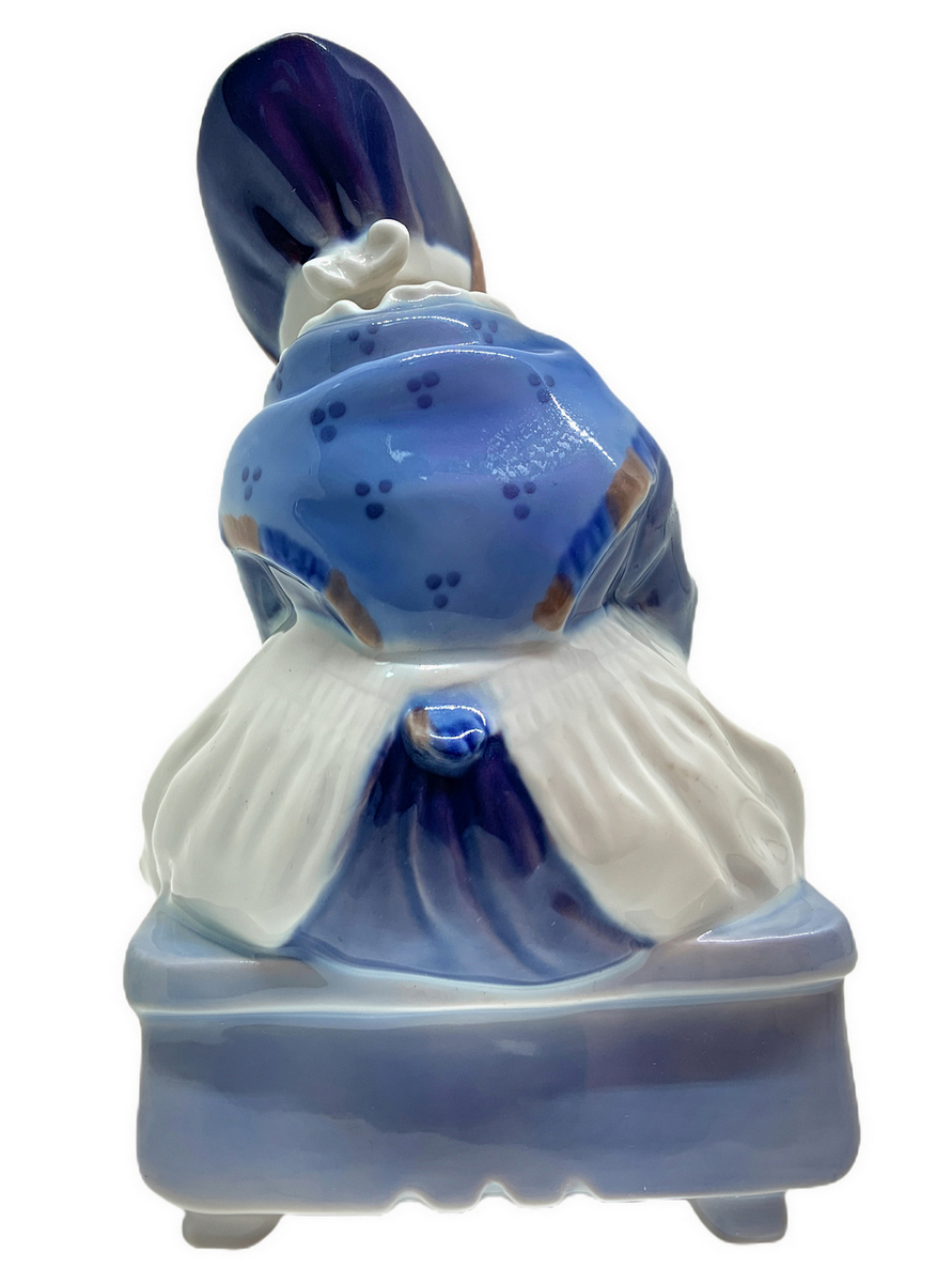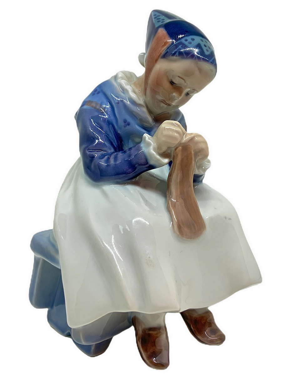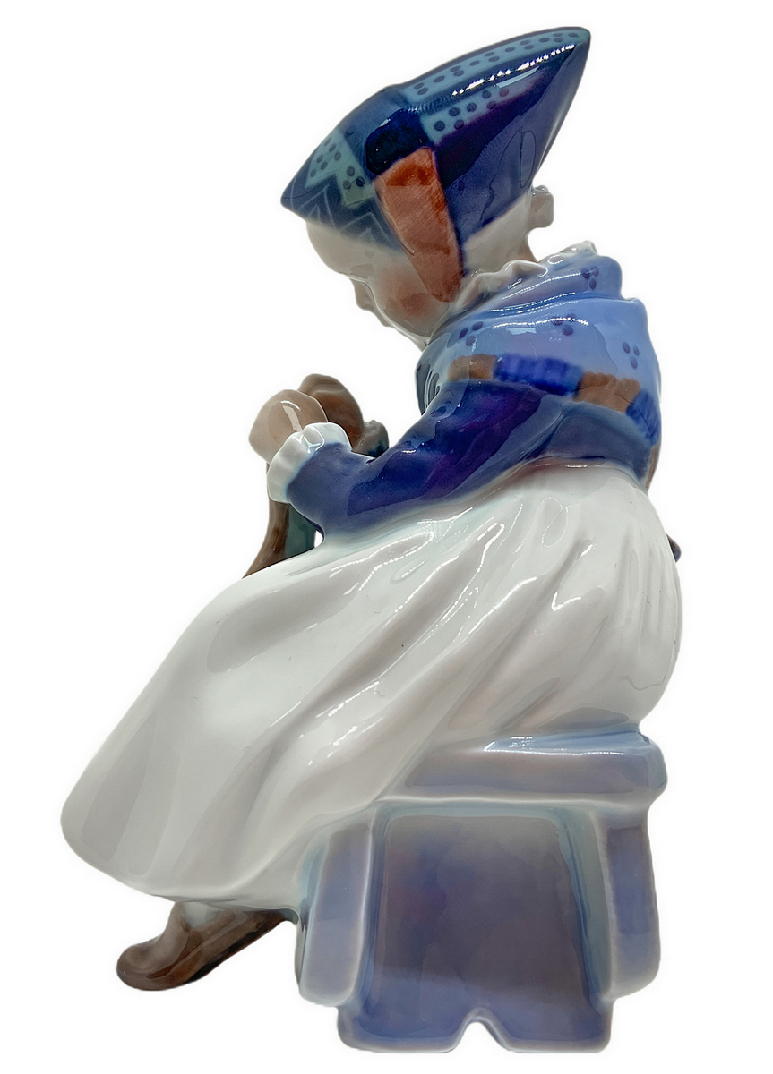 Copenaghen, statuetta in porcellana raffigurante bambina che cuce. H cm 14
