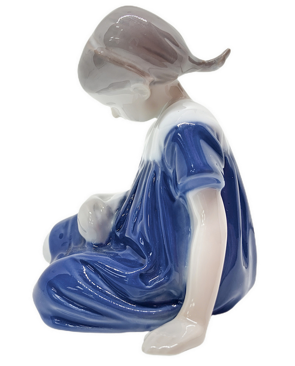 Copenaghen, statuetta in porcellana raffigurante bambina seduta con bambolina