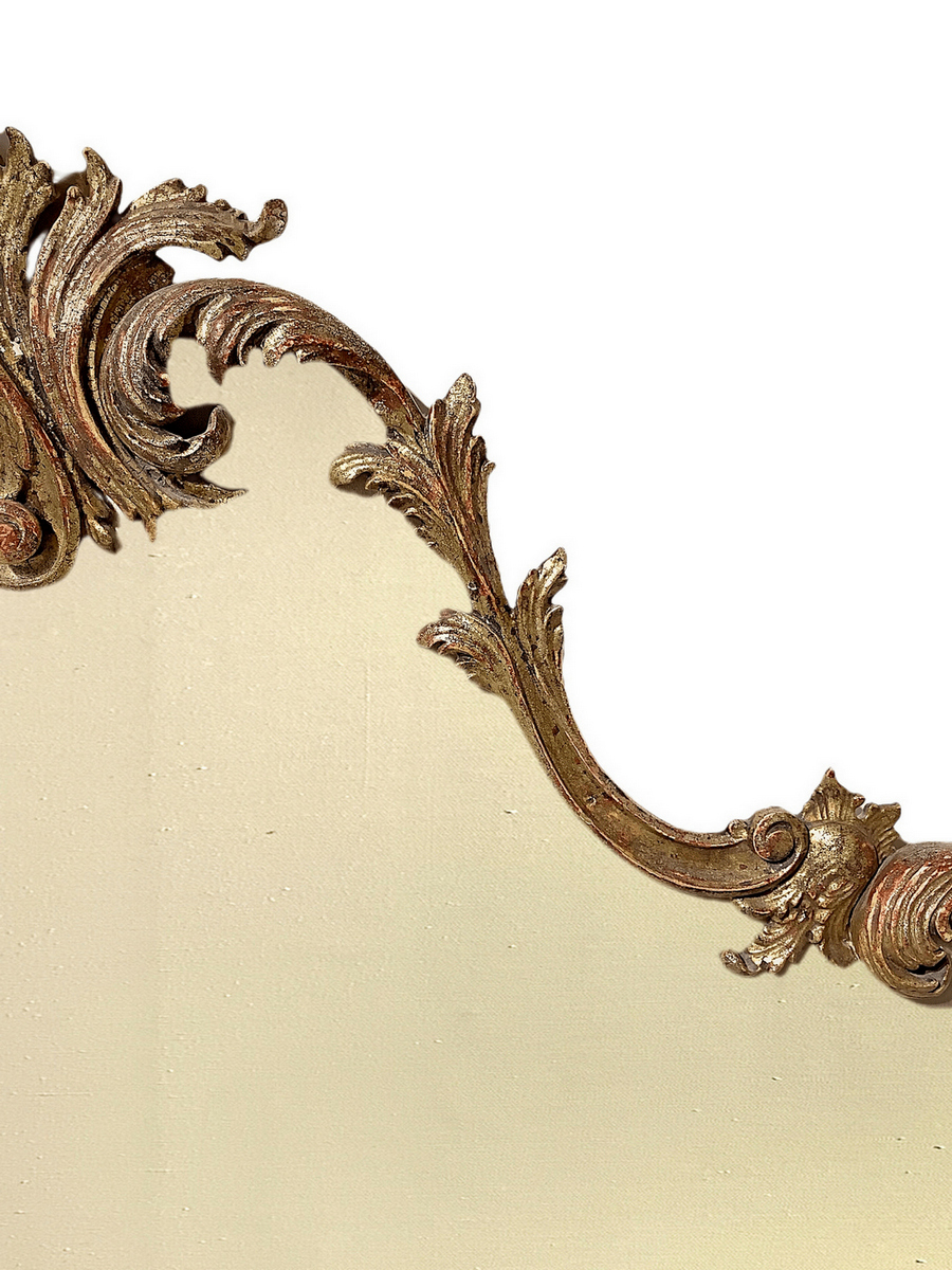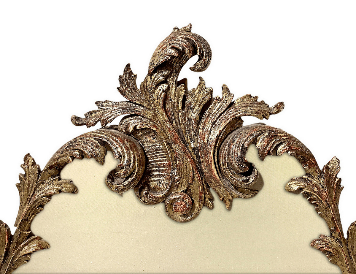 Testata da letto incorniciata in legno dorato e scolpito a ramage con foglie. Inizio XX secolo. H cm 170. Larghezza cm 1