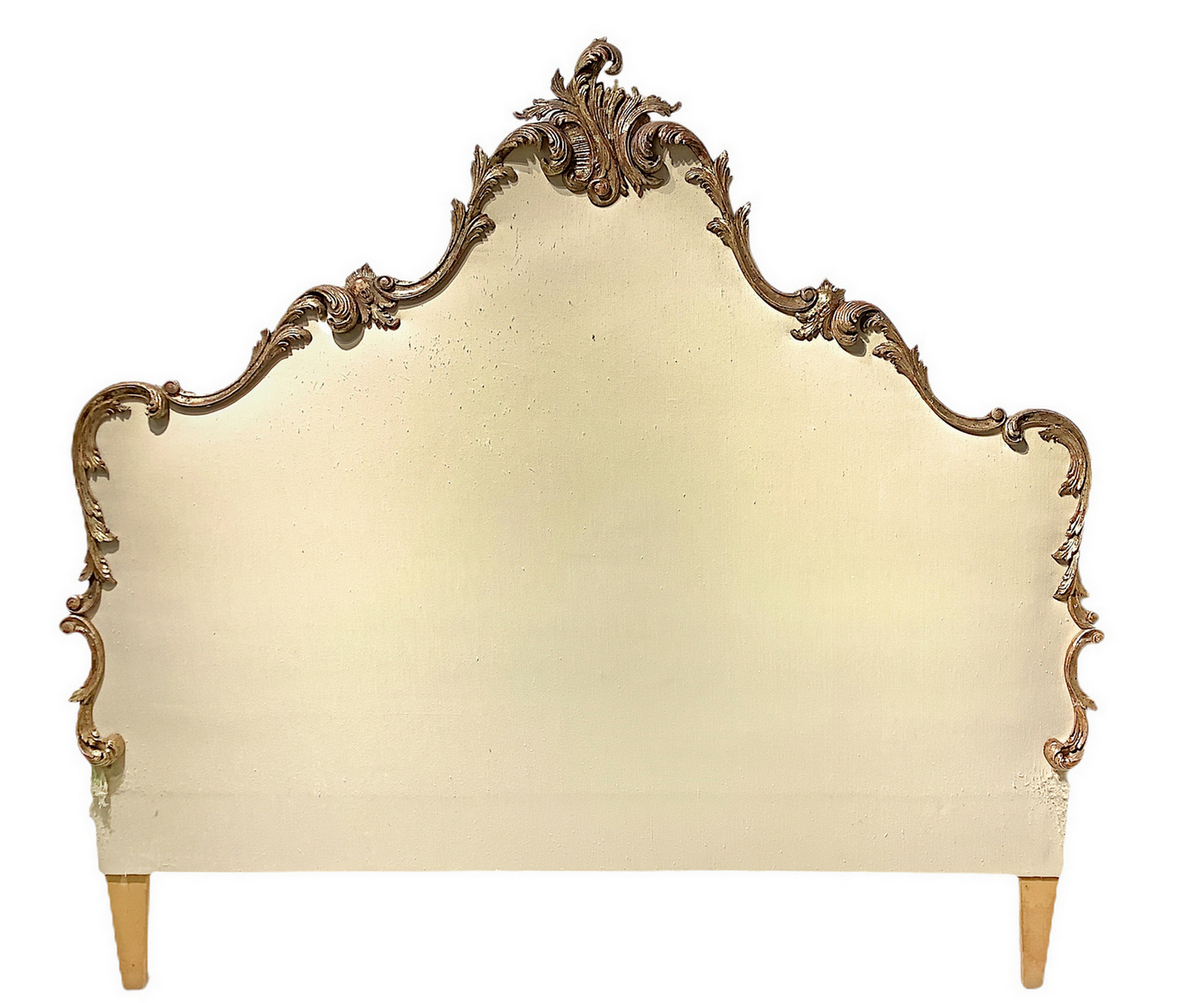 Testata da letto incorniciata in legno dorato e scolpito a ramage con foglie. Inizio XX secolo. H cm 170. Larghezza cm 180