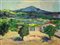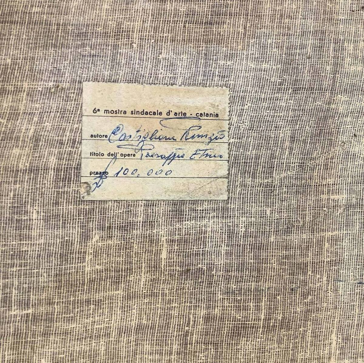 Dipinto ad olio su tavola raffigurante Etna con paesaggio di campagna. Dipinto a macchia. Firmato e datato in basso a destra Castiglione, 1960. Cm 50x60.