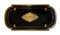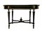 Tavolo da centro in legno nero ebanizzato, cassetto centrale, intarsio centrale al piano in ottone. Applicazioni di bron