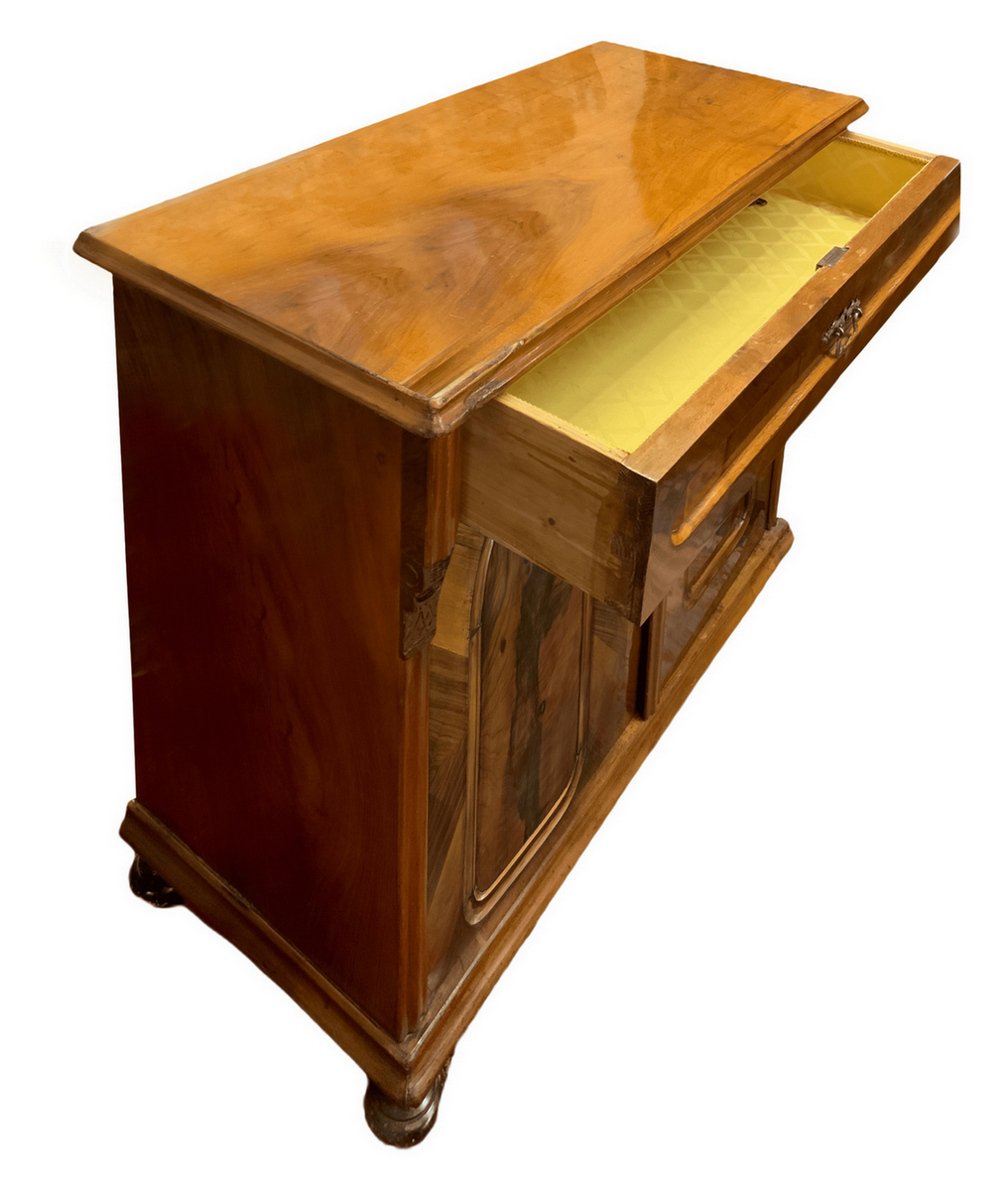 Credenza servante in legno di noce con cassetto centrale superiore, due sportelli alla base, piedi a cipolla. H cm 95. Larghezza cm 95x46. Ottime condizioni 250