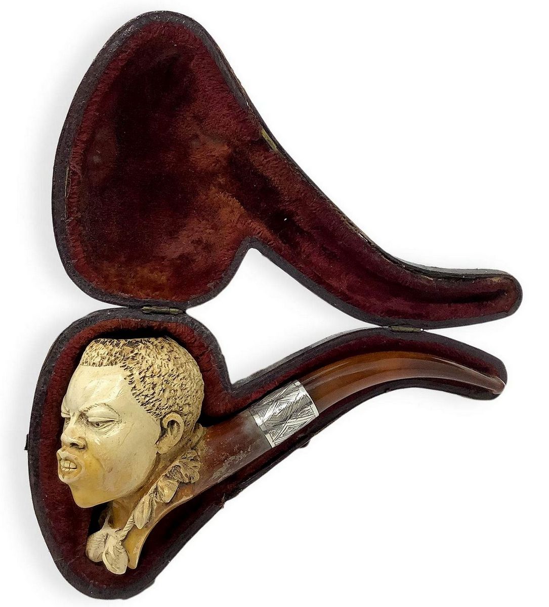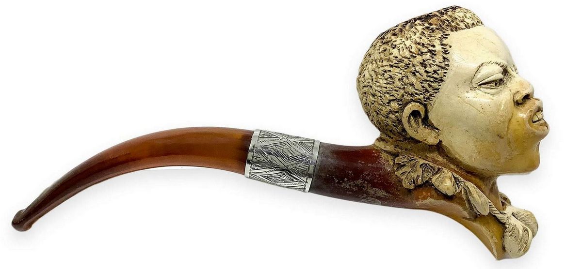 “ Personaggio Africano “ - Vienna, Austria. Seconda metà del 1800. Pipa con fornello e cannello in schiuma, bocchin