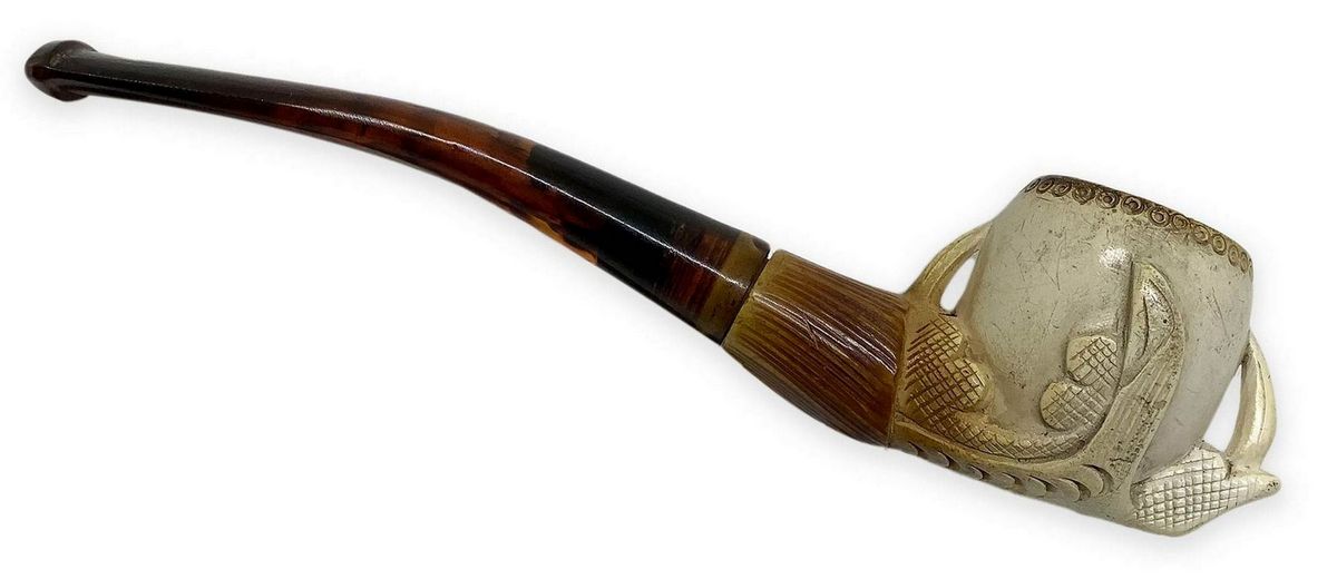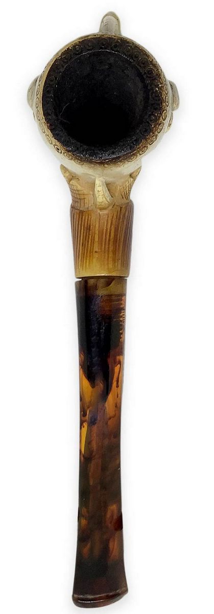 Pipa con fornello e cannello in schiuma, bocchino in ambra.
