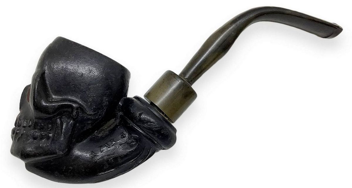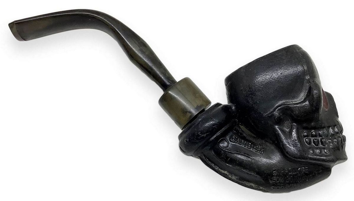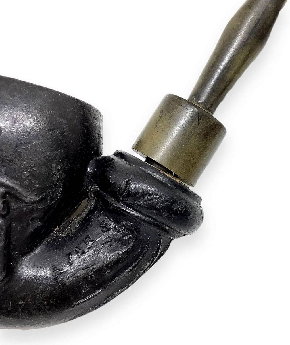 “ Teschio" di Gambier - Marsiglia, Francia. Prima metà del 1900. Pipa con fornello e cannello in argilla, bocchino in