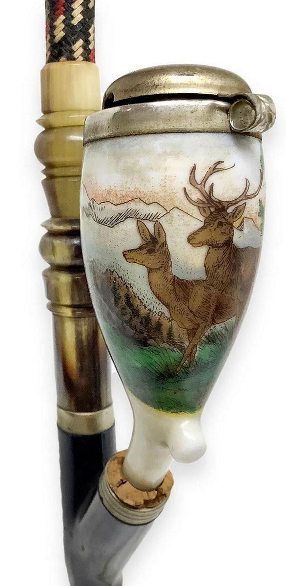 Lot 628 | “ Pipa tirolese con cervi “ - Alto Adige. Prima metà del ‘900. Pipa del tipo Tirolese con fornello in ceramica, c
