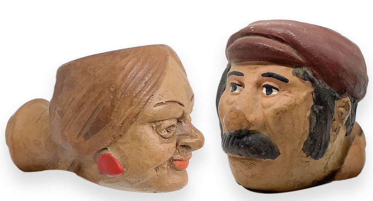 “ Compare Alfio“ - Dipinta a mano. Catania, Sicilia. Prima metà del 1900. Pipa con fornello e cannello in argilla d