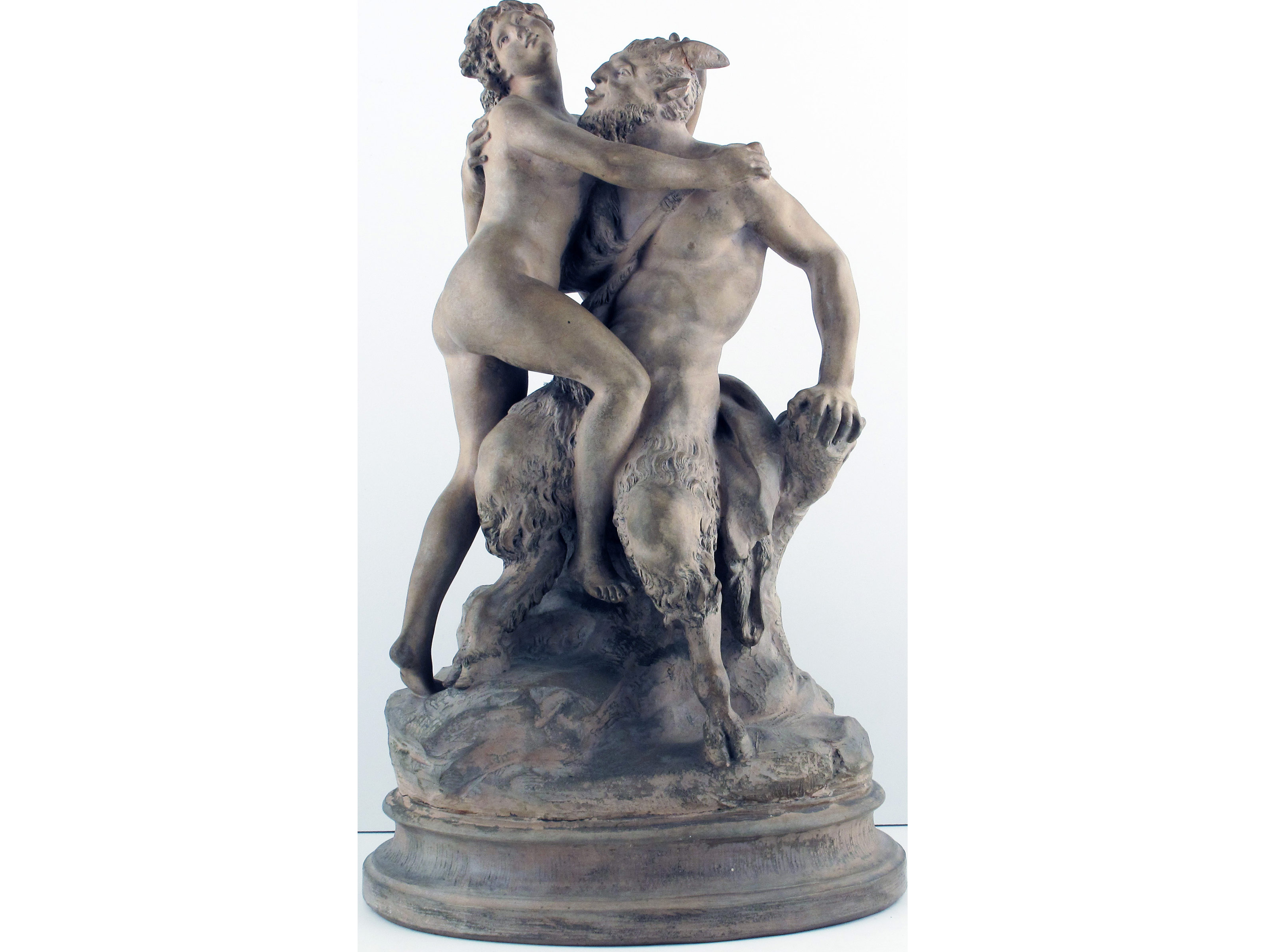 Seguace di Claude Michel, detto Clodion Satiro e Ninfa Terracotta Firmato Altezza 45.5 cm