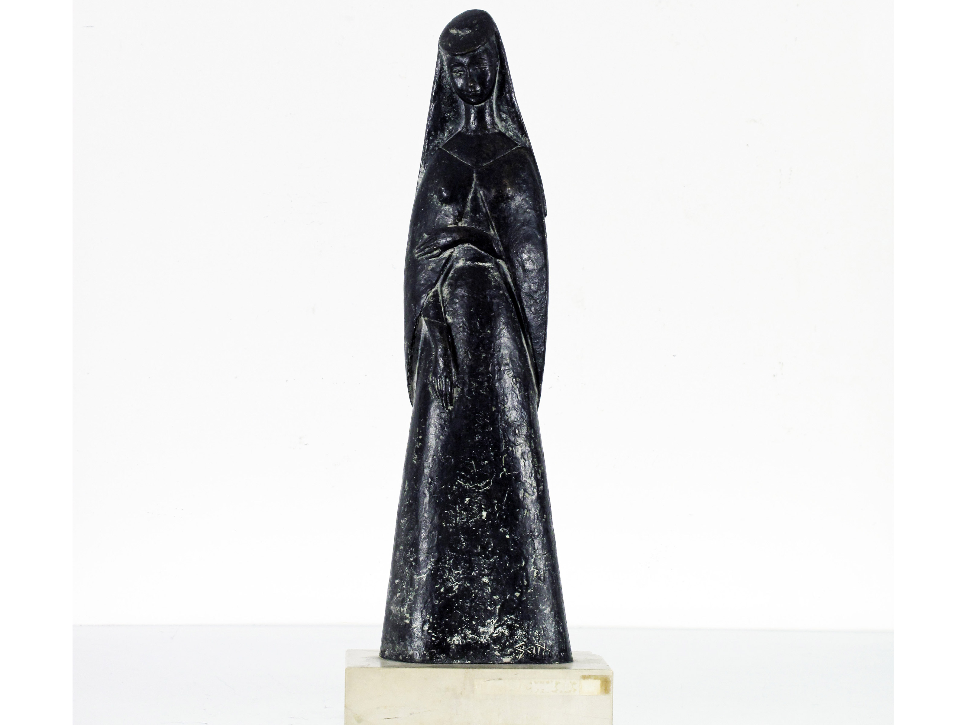 Mario Gatti (XX secolo) Madonna Bronzo Base in marmo Firmato Altezza 42 cm