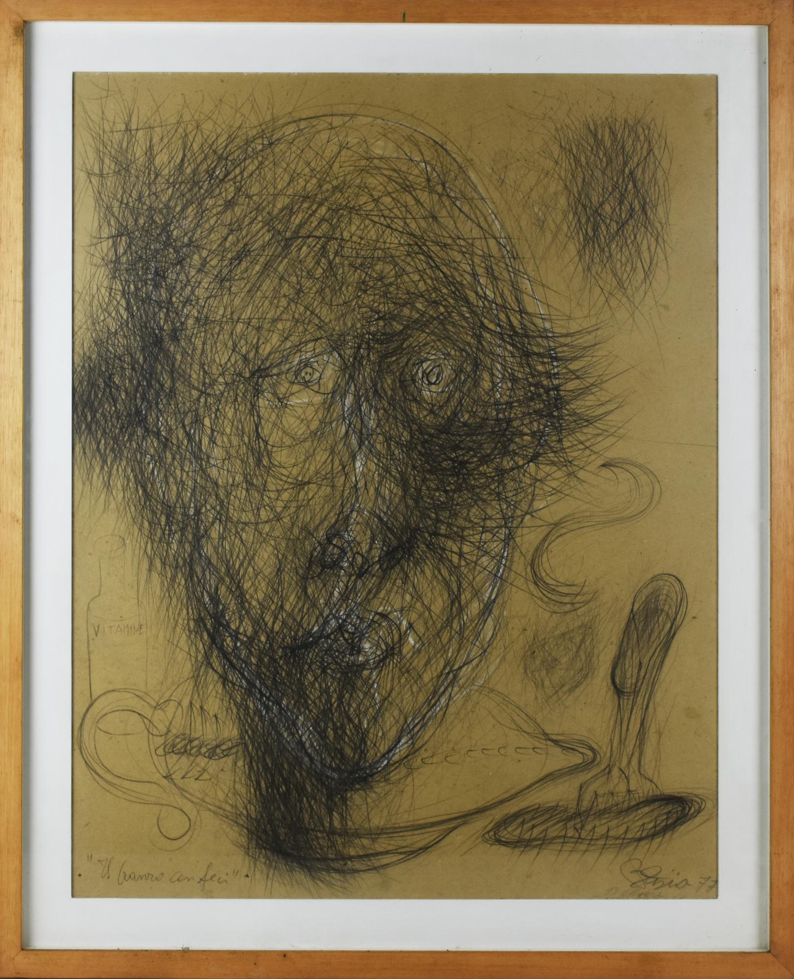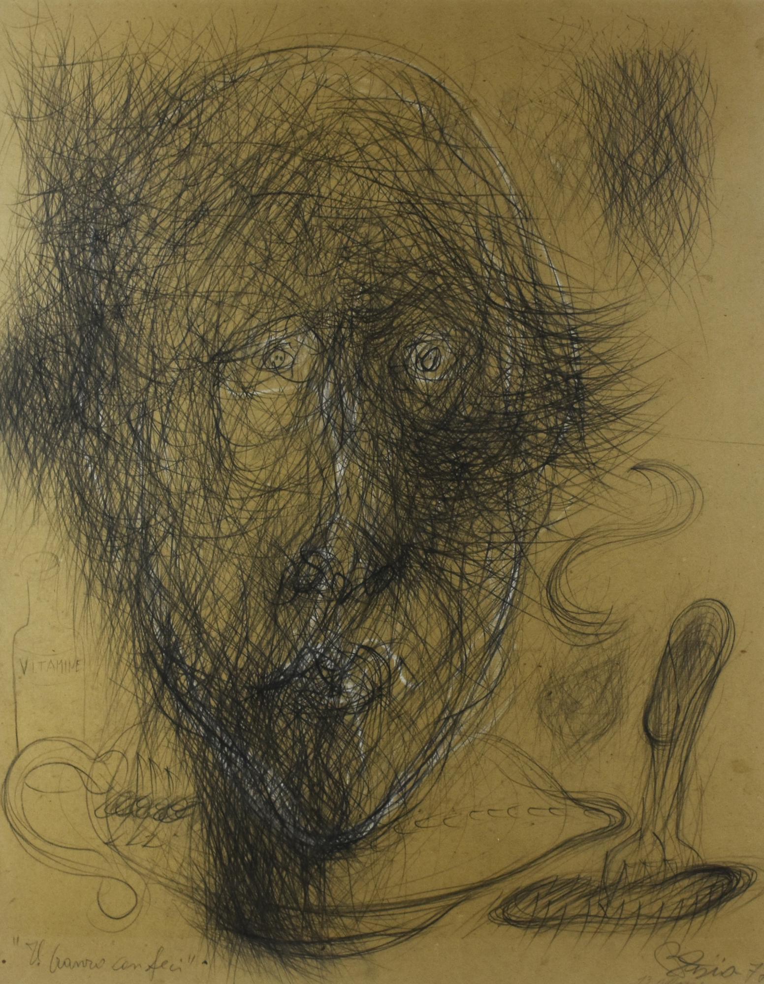 Pietro Bisio IL BRONZO CON FECI tecnica mista su carta applicata su tavola,...
