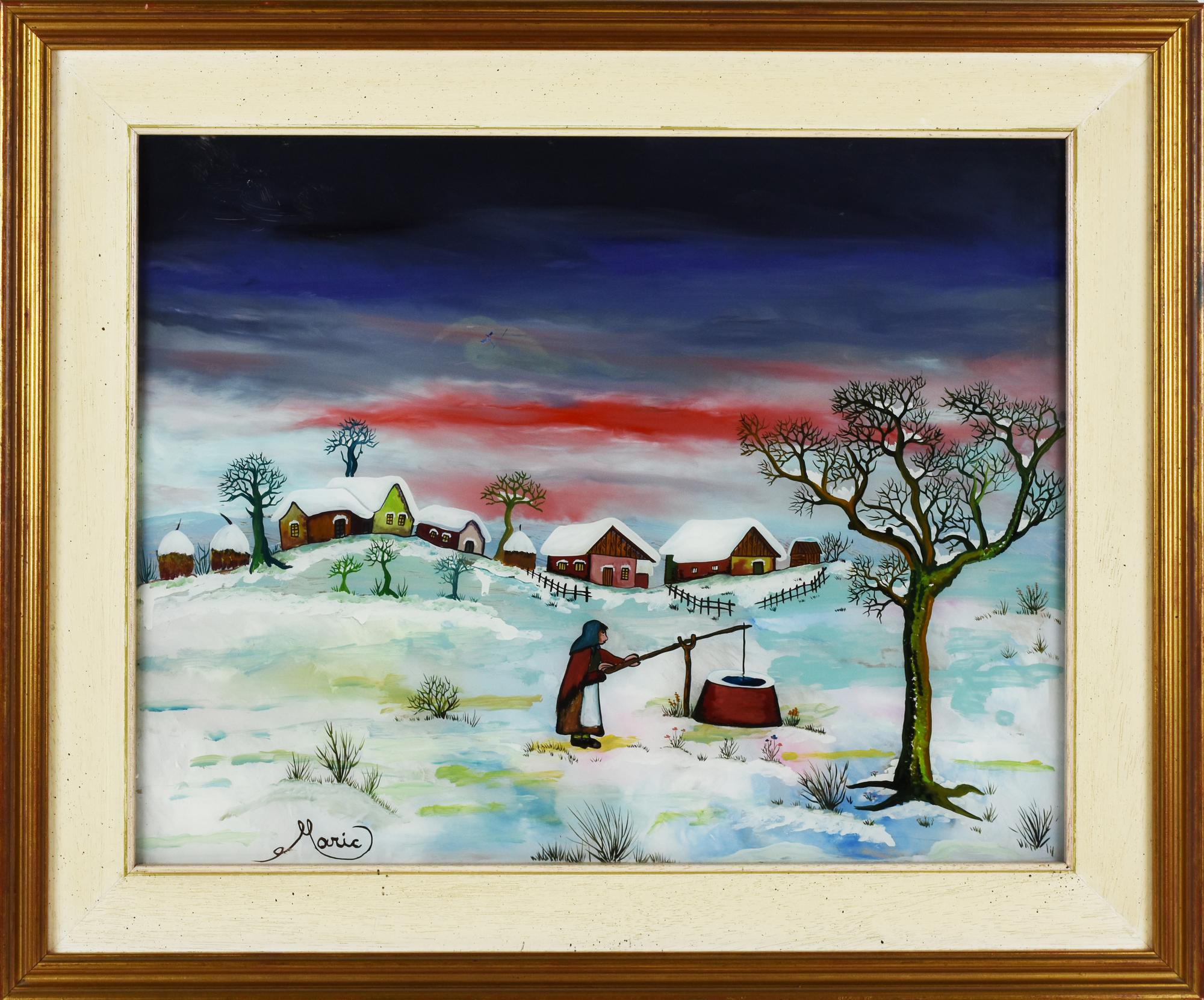 Maric PAESAGGIO INVERNALE NAIF acrilico su vetro, cm 40x50 firma