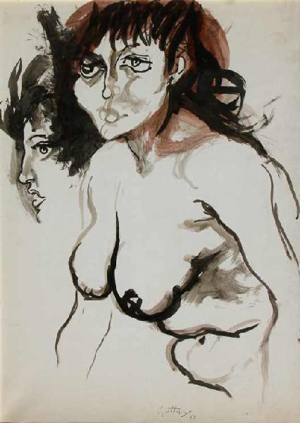 Renato GUTTUSO Bagheria 1912 - Roma 1987 Nudo e profilo, 1962 China su carta...