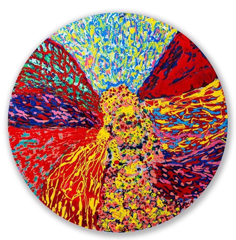 Fedora Spinelli Smalto su plexiglass diam. 85 Clown 2016 Autentica dell'artista su foto