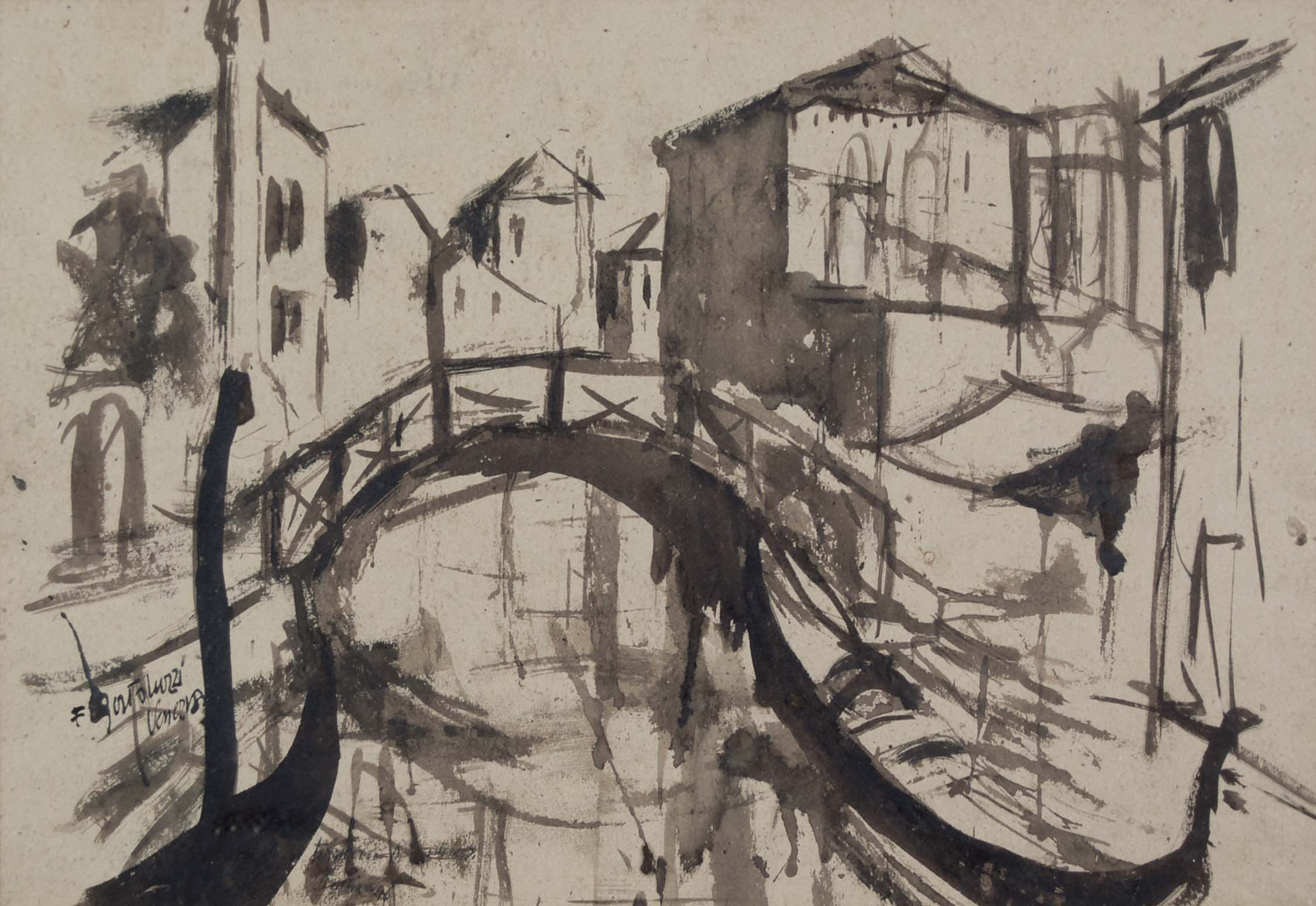 BORTOLUZZI FERRUCCIO Venezia 1920 - 2007 Venezia 1946 gouache su carta 35x50 cm firma e data in basso a sinistra