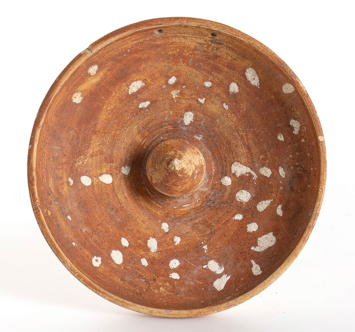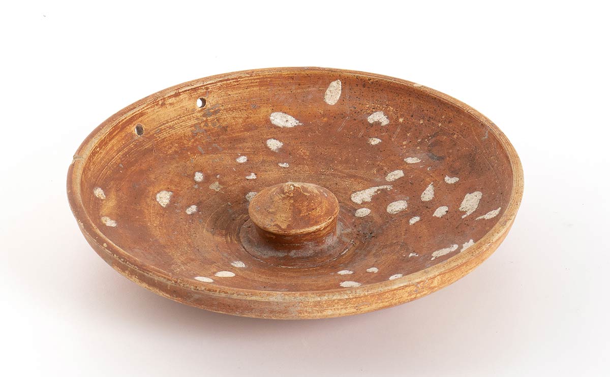 III secolo a.C.; diam. cm 17; alt. cm 3; Intatta, con due fori di sospensione. Labili tracce di decorazione a girali vegetali.