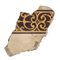 I - II secolo d.C.; alt. cm 9,5; largh. cm 6,5; plexiglass cm 14 x 15; Frammento di affresco di epoca romana: su parete in fondo bianco è un’elaborata cornice gialla su fascia in rosso pompeiano.
