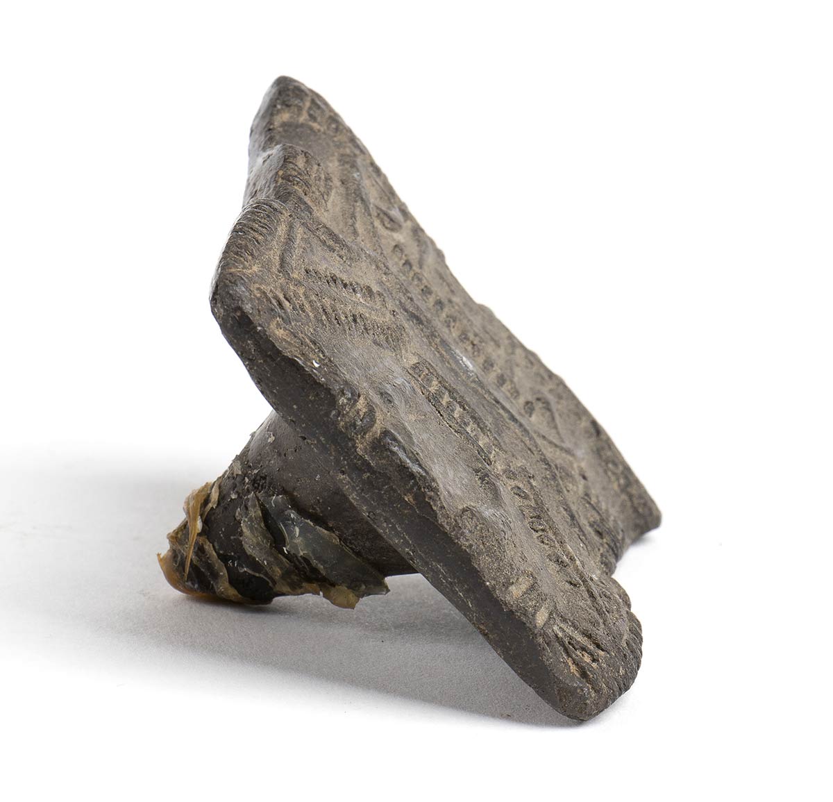 Cultura Tumaco - La Tolita, IV secolo a.C. - IV secolo d.C.; lungh. cm 7; Caratterizzata da una decorazione antropomorfa e usata come stampo per decorare il corpo, il pane o i tessuti.