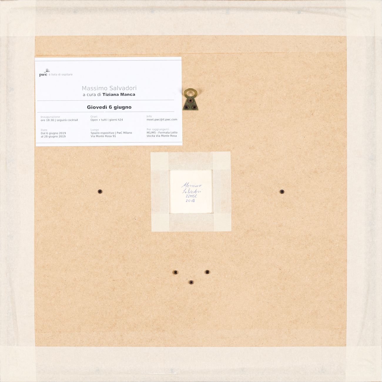 2019 Pwc, Milano, Massimo Salvadori, a cura di Tiziana Manca, dal 06/06/19 al 28/06/19 (come da etichetta dell'esposizione al retro)