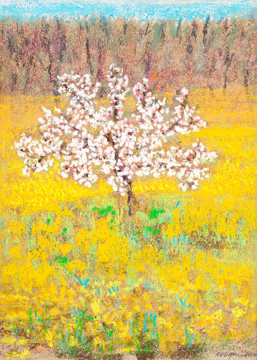 Tecnica mista e pastelli su carta applicata su tavola