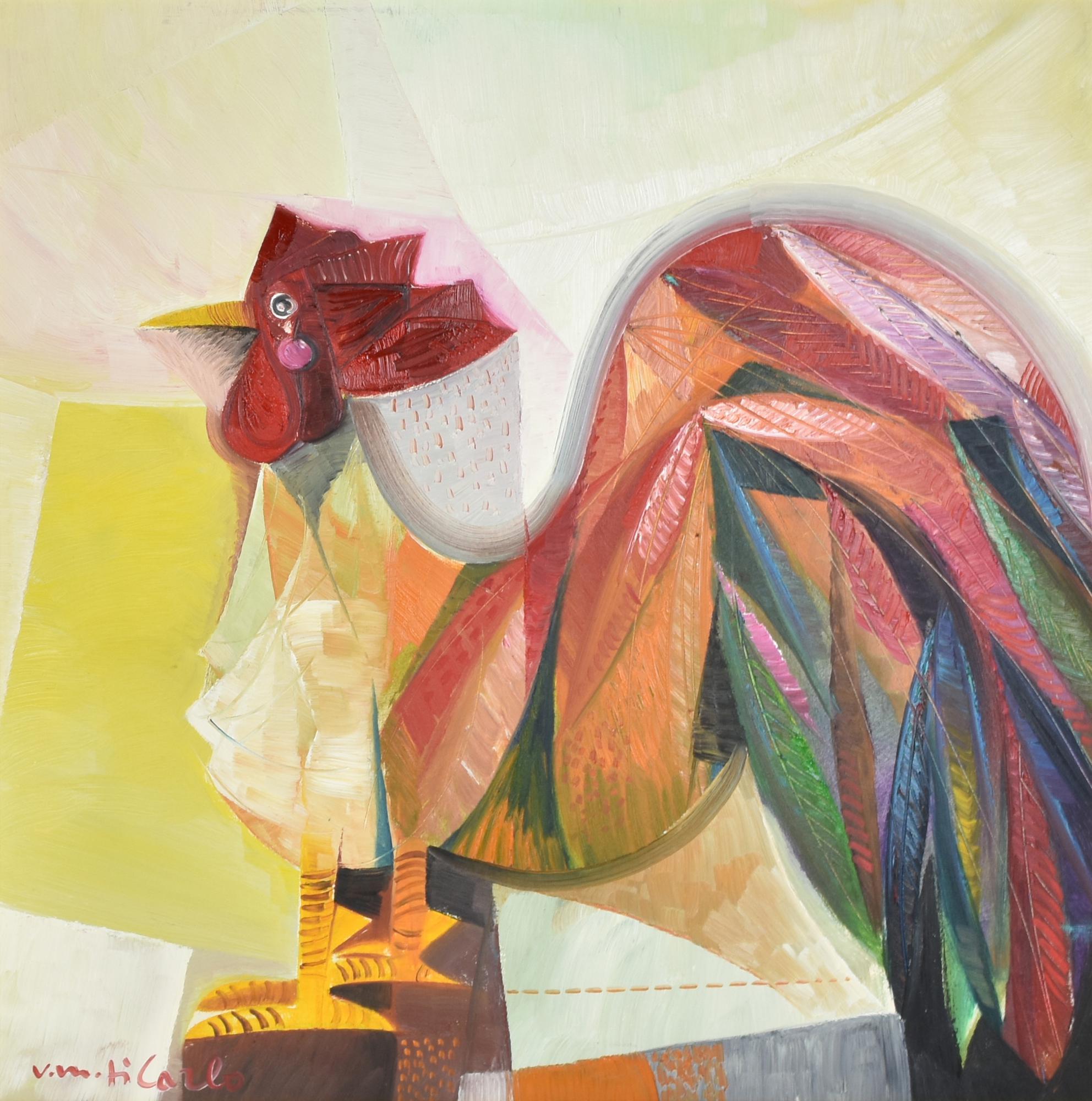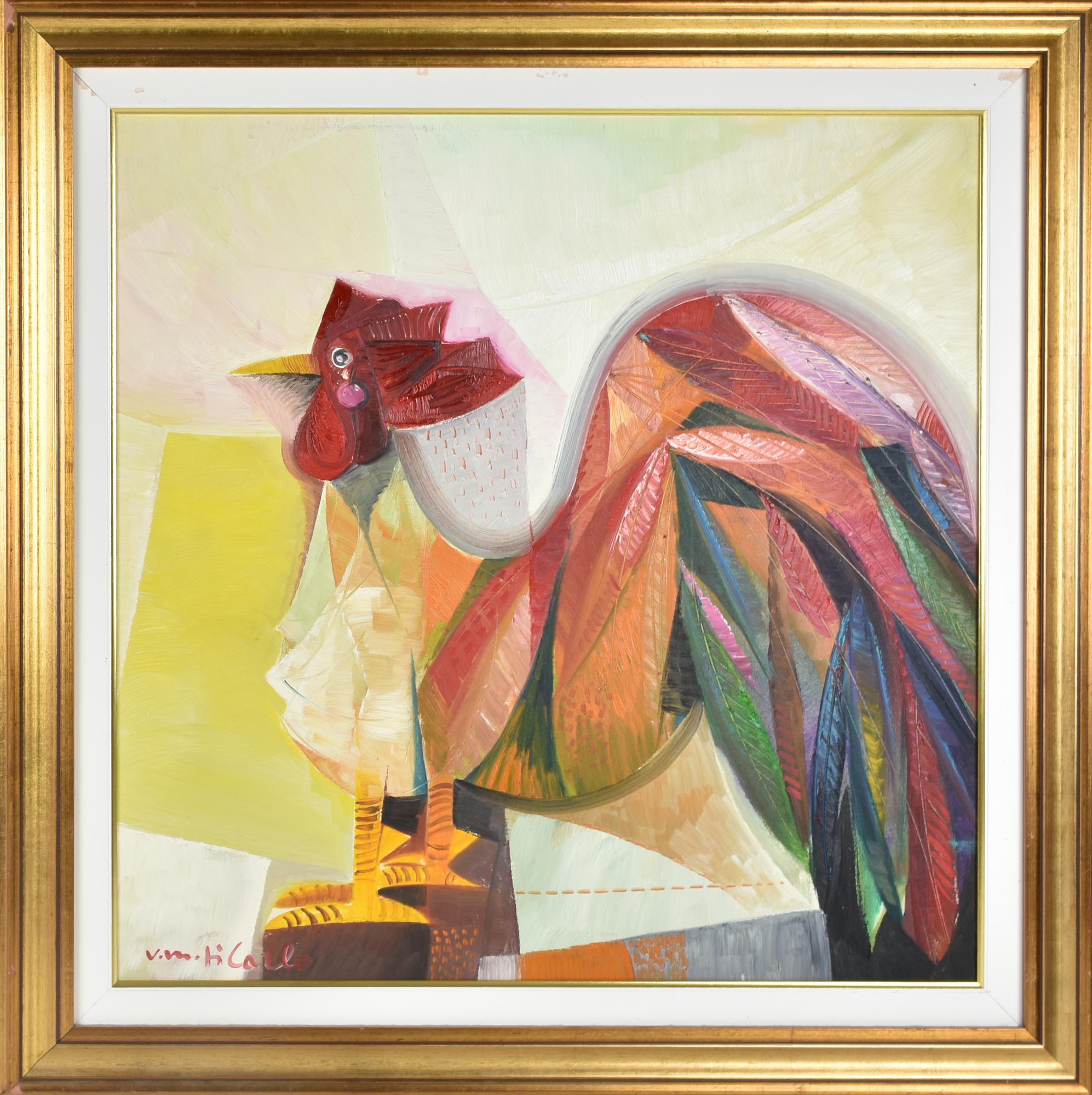Vittorio Maria Di Carlo IL GALLO DA COMBATTIMENTO olio su tela, cm 60x60...
