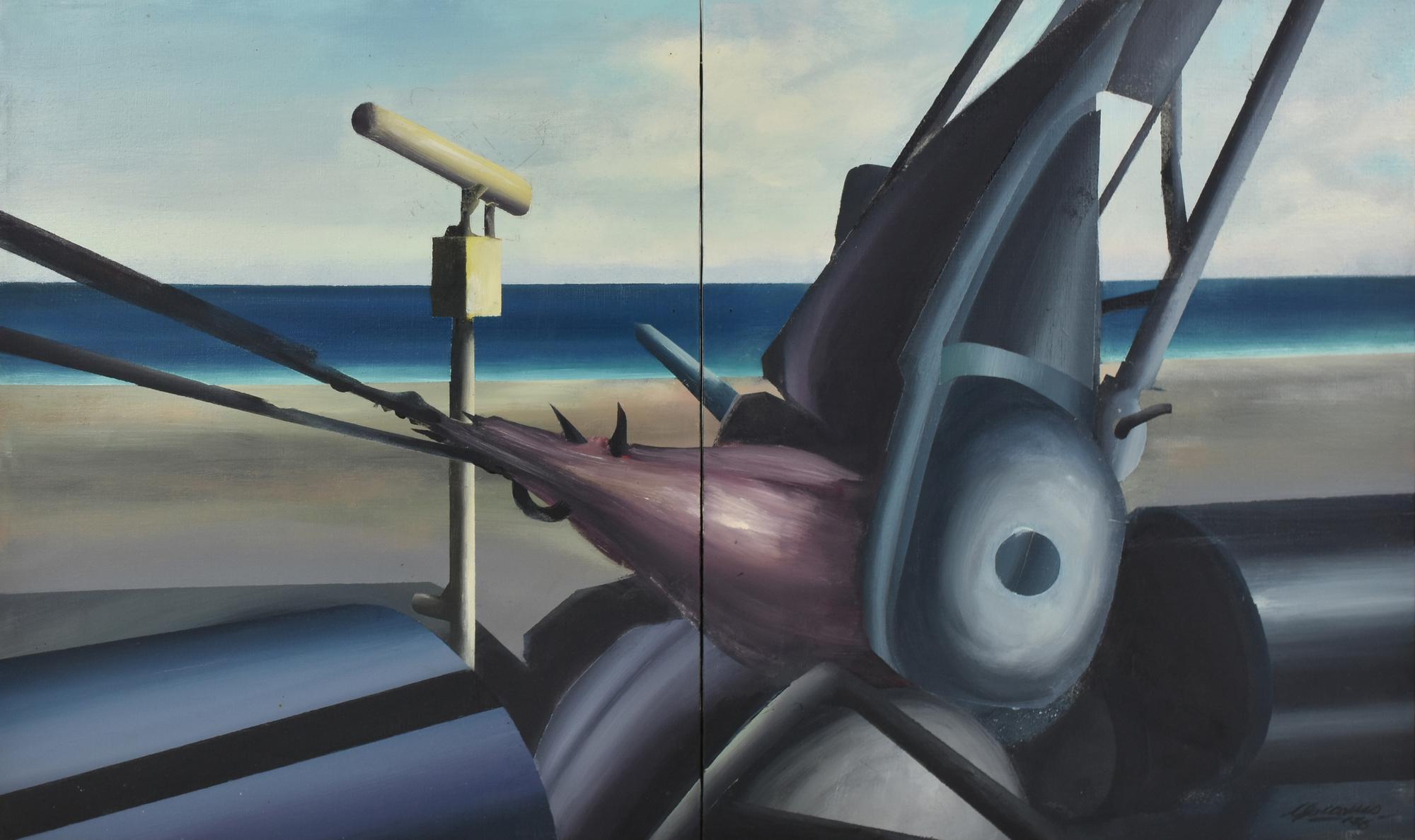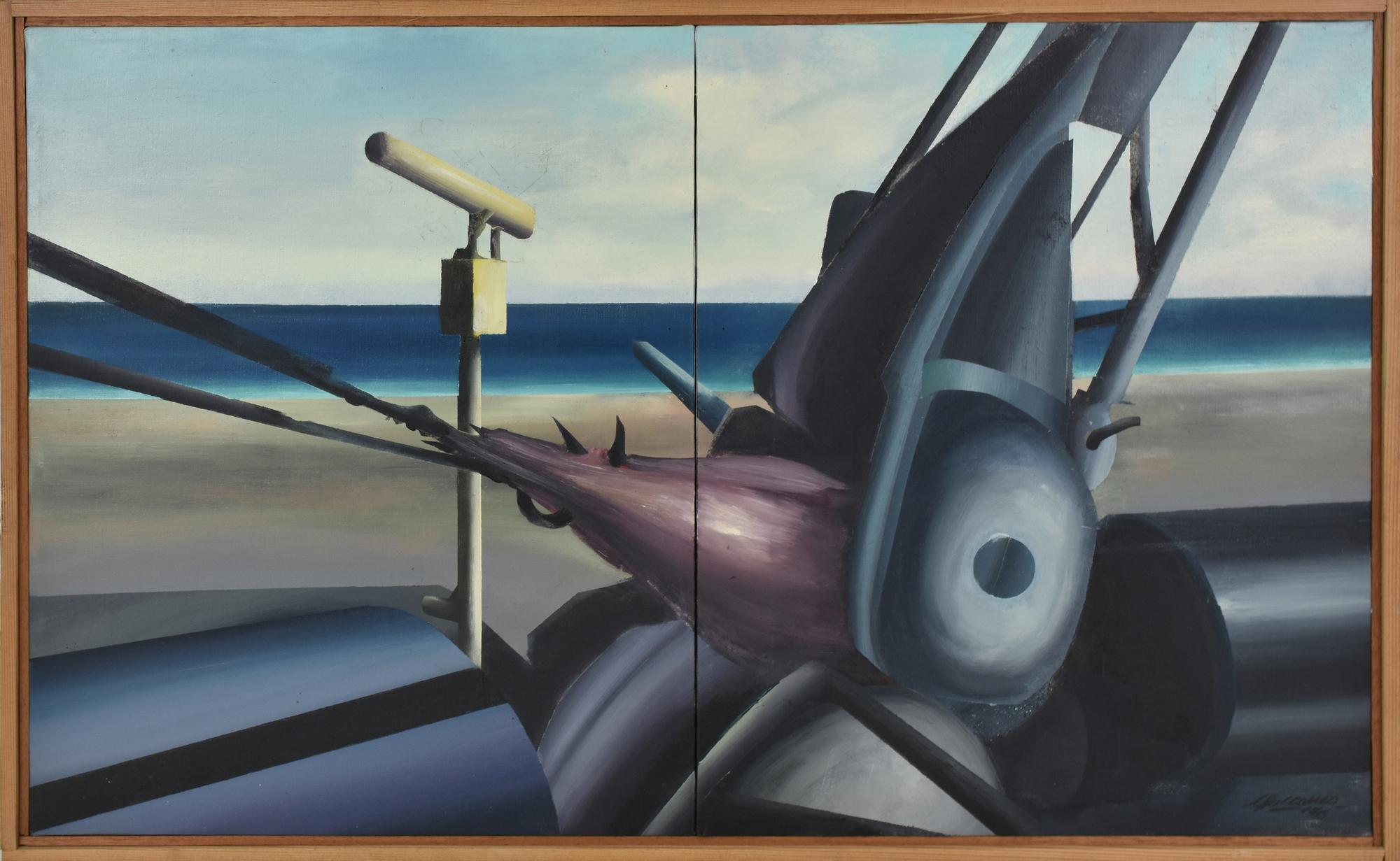Giuseppe Caccamo ESTRATTORE olio su tela, cm 50x80 firma e data sul retro:...