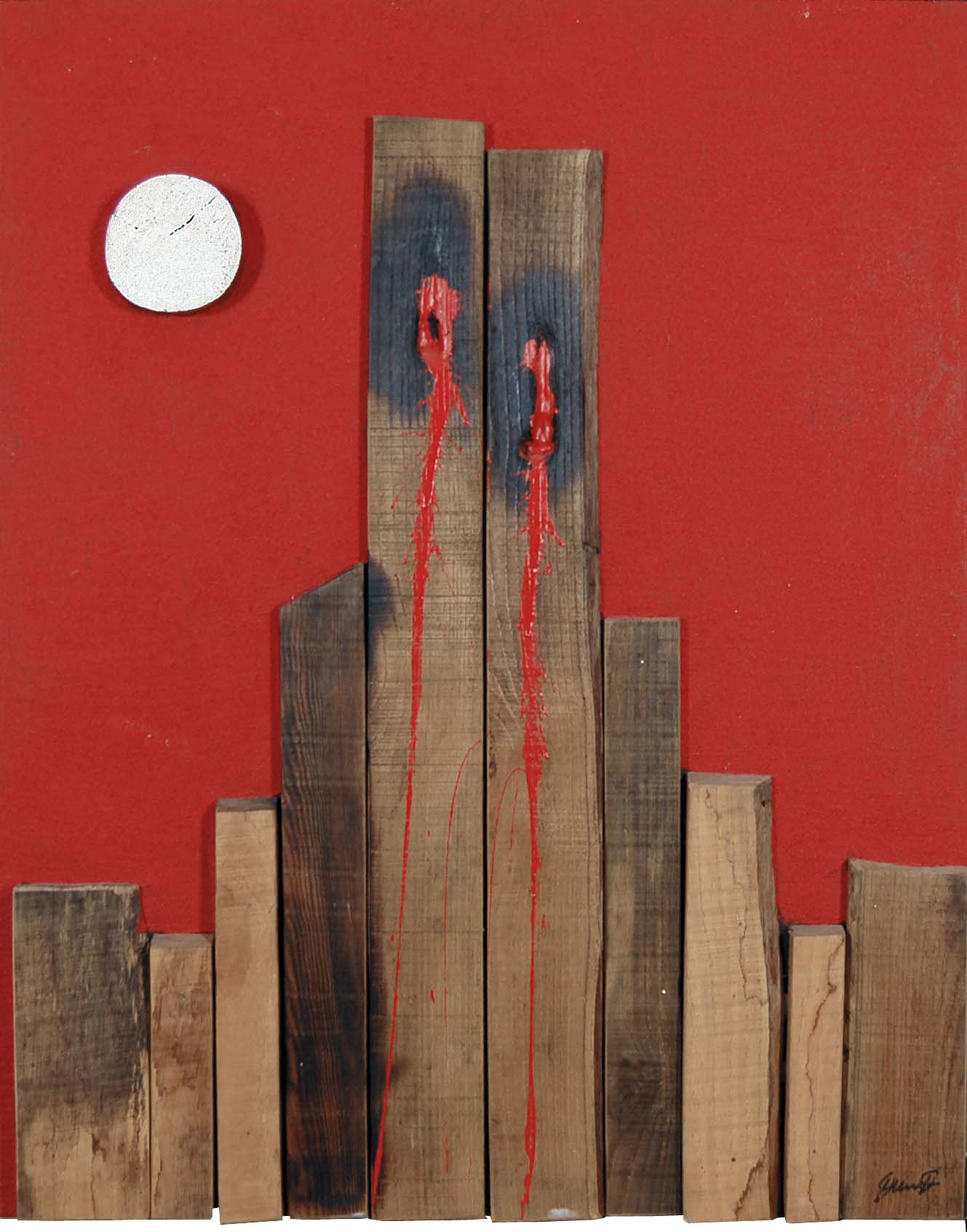 DE LUTTI PIERLUIGI Monfalcone 1959 Doppia ferita tecnica mista su legno...