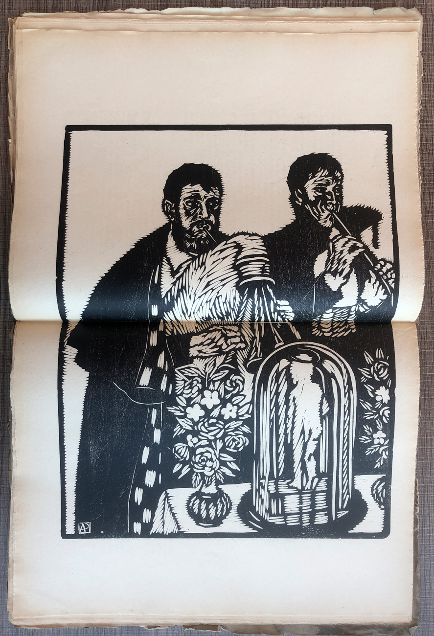 Fascicolo dedicato ad artisti belgi con 4 xilografie di Publio Morbiducci e 2 xilografie di Francesco Gamba