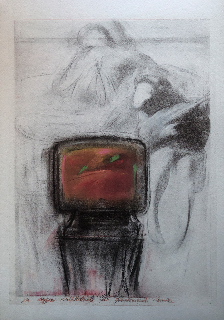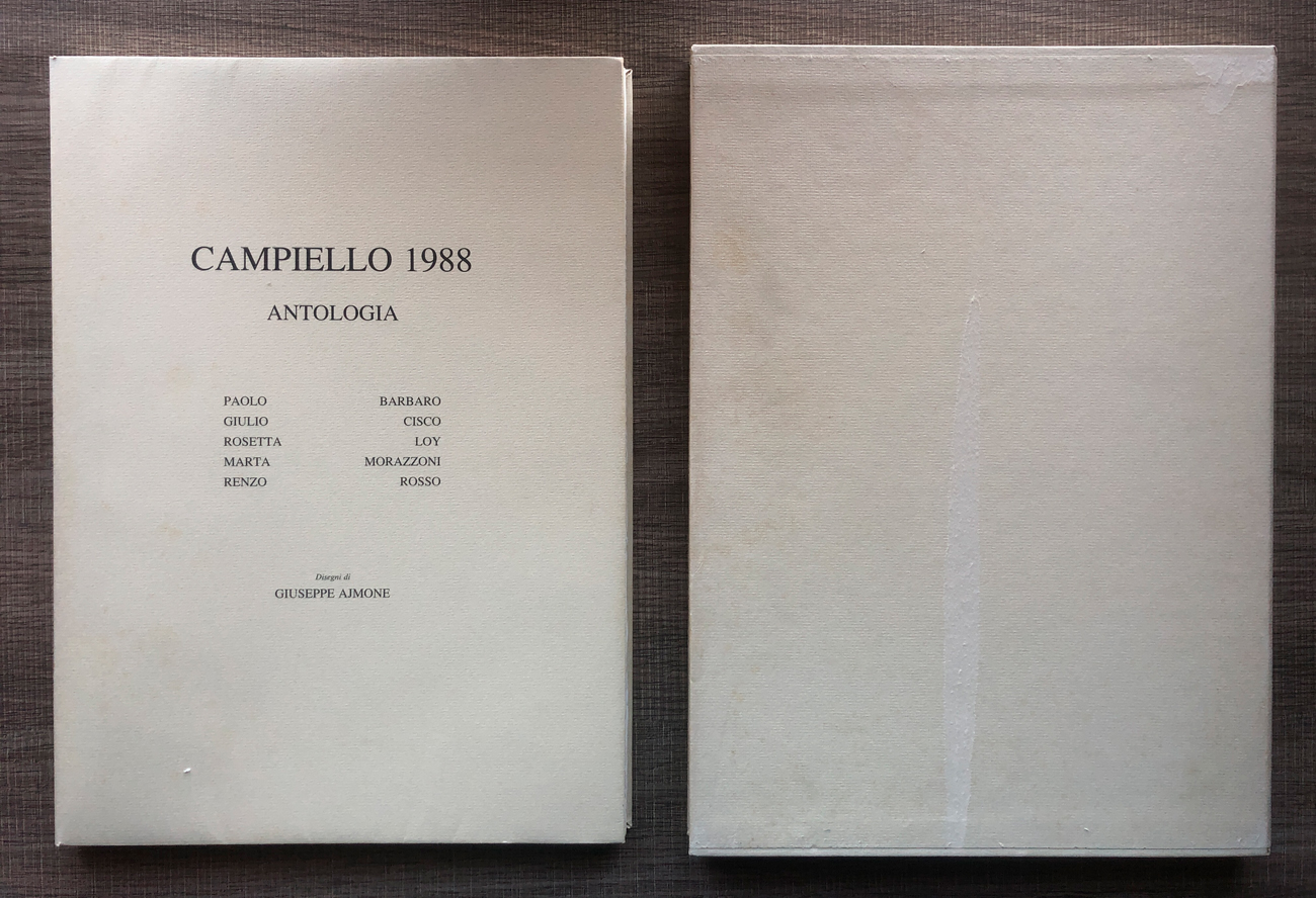 Volume contenente 5 fotolitografie di Giuseppe Ajmone, ciascuna recante firma e datazione in lastra, e un'antologia di testi di Paolo Barbaro, Giulio Cisco, Rosetta Loy, Marta Morazzoni e Renzo Rosso
