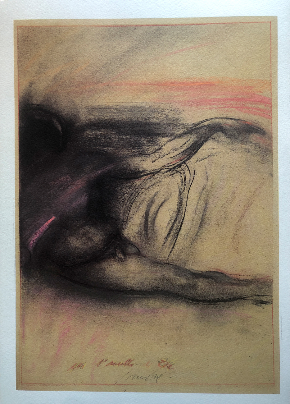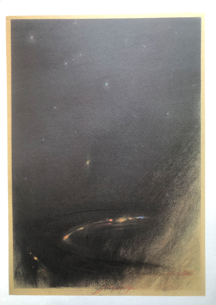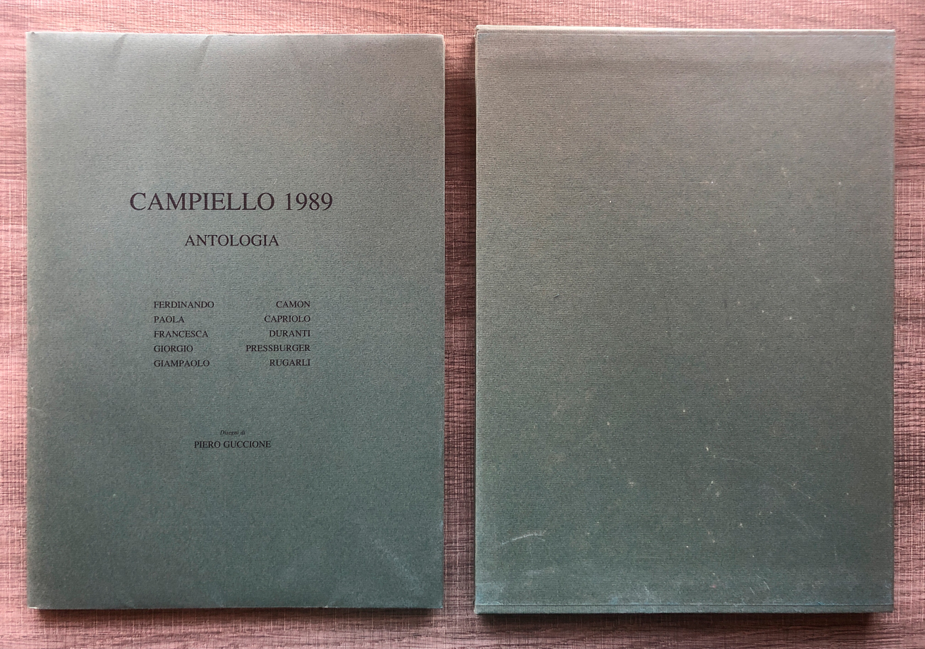 Volume contenente 5 fotolitografie di Piero Guccione, ciascuna recante firma e datazione in lastra, e un'antologia di testi di Ferdinando Camon, Paola Capriolo, Francesca Duranti, Giorgio Pressburger e Giampaolo Rugarli