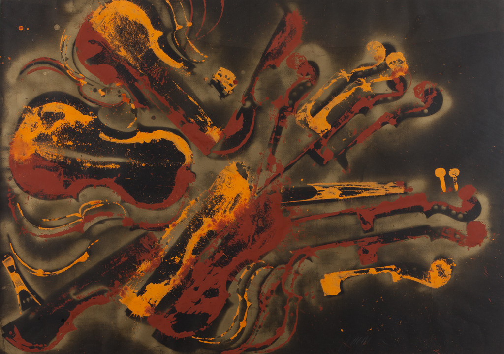 stamp ink and spray varnish on carboard 27 55x39 37 in